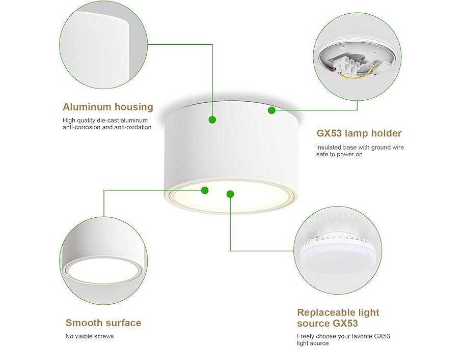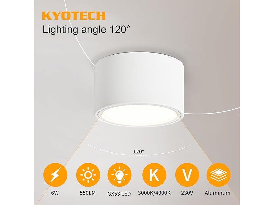 Ongebruikt, getest en werkend, ok, KYOTECH 4 x led-oppervlaktespots, 4000 K, plafondspot, mat wit, 6 W, 550 lm, GX53, oppervlaktespot, Ø 95 x 55 mm, 230 V, plafondspot voor slaapkamer, woonkamer, B0DBQQW1TD