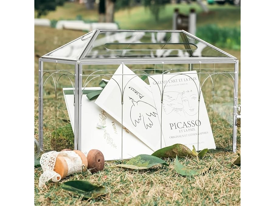 Ncyp glazen kaartendoos met gleuf en slot voor bruiloftsreceptie