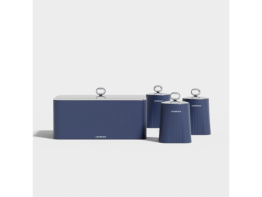 Ongeopend. Lellaluka Broodtrommel, 4-delige set, suikerpot, meelopslag en koffieblik luchtdicht, brooddoos, B0CR6KN7SV