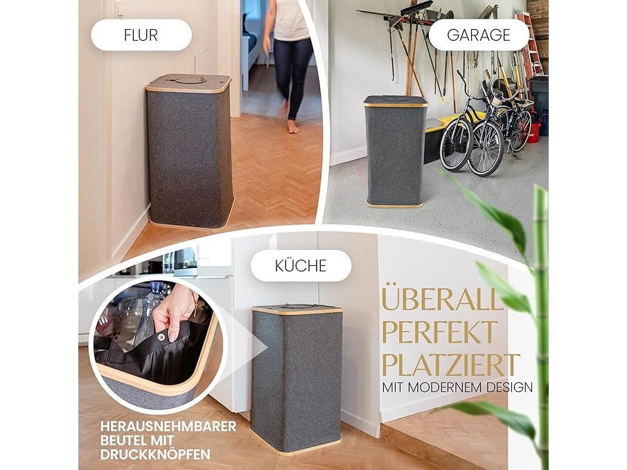 Ongeopend, ALMAGI® - Verzamelcontainer XXL '112L' wasmand – praktische statiefflesjesverzamelcontainer met uitneembare waterdichte binnenzak – extreem stabiel dankzij het onderste bamboeframe [112 l] recyclingcontainer, B0D7SW42LK