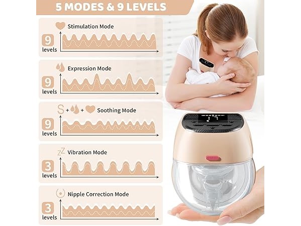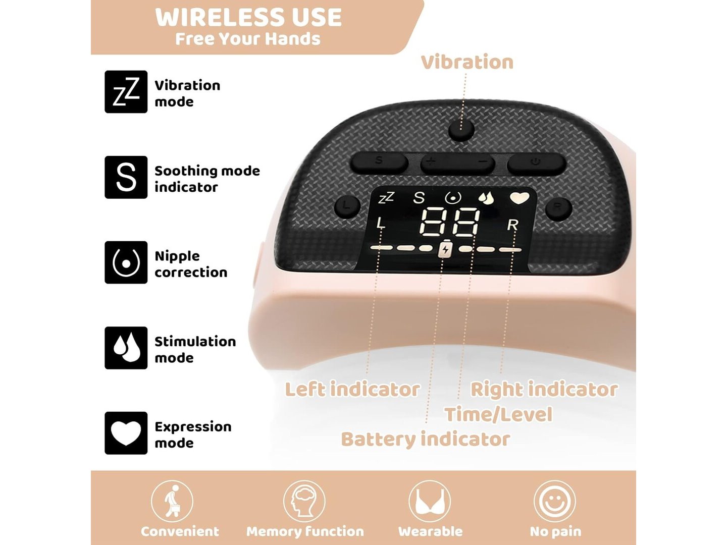 Ongeopend, Elektrische melkpomp, draagbaar, handsfree elektrische melkpomp, 5 modi en 9 standen, oplaadbaar, geheugenfunctie, elektrische melkpomp, lekvrije melk, geluidsarm, pijnloos, 24 mm , B09XXB3366