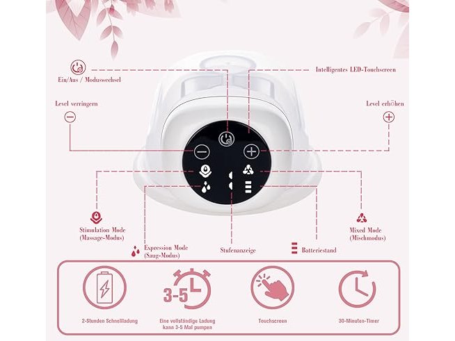 Ongeopend, Elektrische borstpomp, pijnloos & ultra-stil, handsfree borstkolf met siliconen melkopvangschalen, 3 modi en 9 standen, lcd-display, 24 mm flens/19 mm 22 mm inzetstukken, B0BV9J33KQ