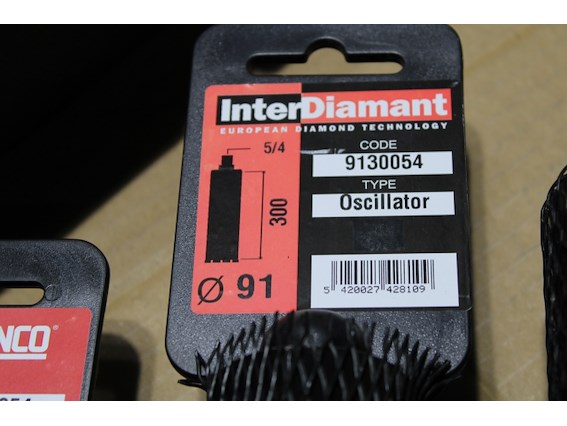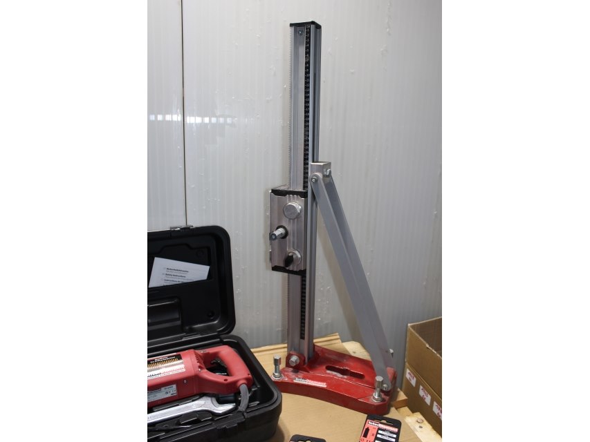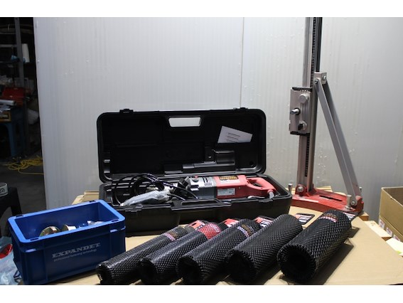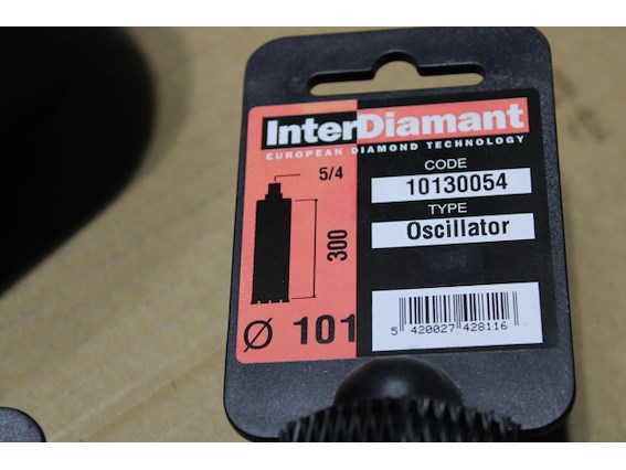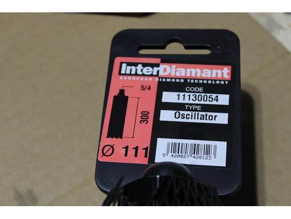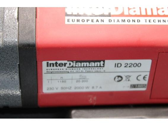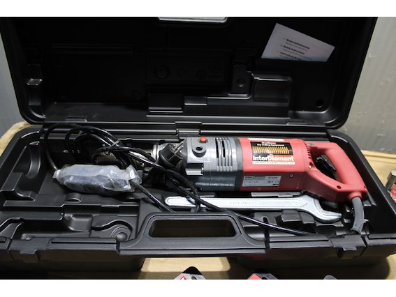 Ongebruikt, halsaansluiting motorbevestiging en hendel ontbreken, Droogboorpakket, Interdiamant diamantboormachine ID2200 (2000W, 1/25/4), boorstatief D200, droogboor oscillator diameter 71/81/91/101/111 x 300, verankeringsset