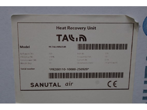 Ongebruikt, Sanutal Tallinn 250R ventilatie unit