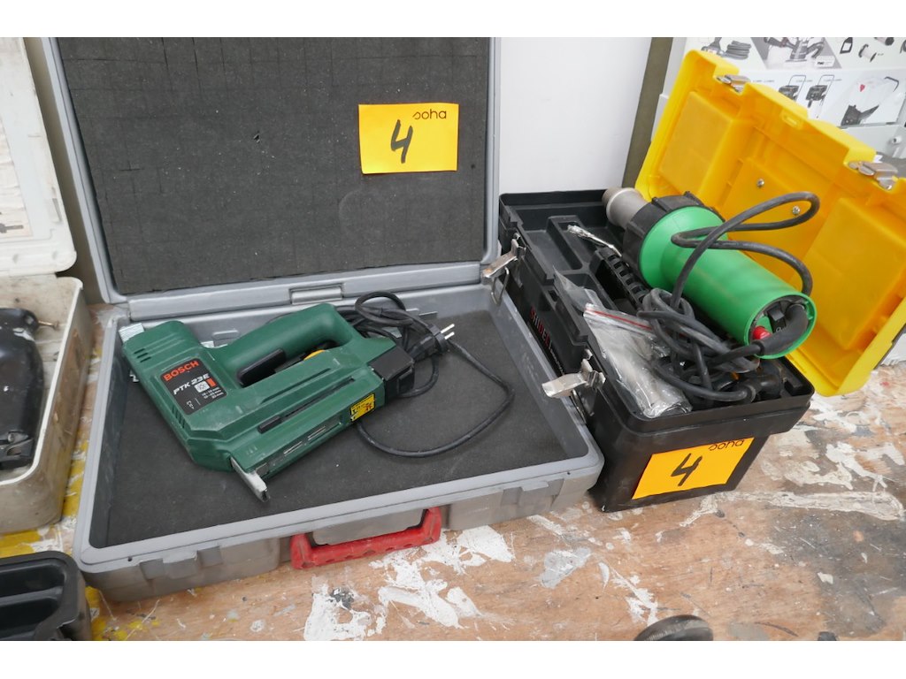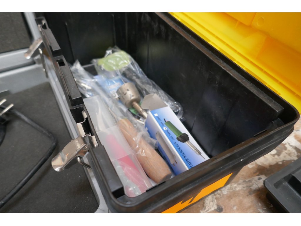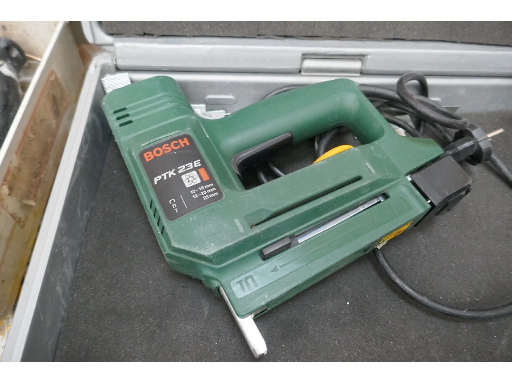 Elektrische nietmachine met koffer<br /> *merk : BOSCH<br /> *model : PTK 23E<br /> Elektrische soldeerbout met koffer