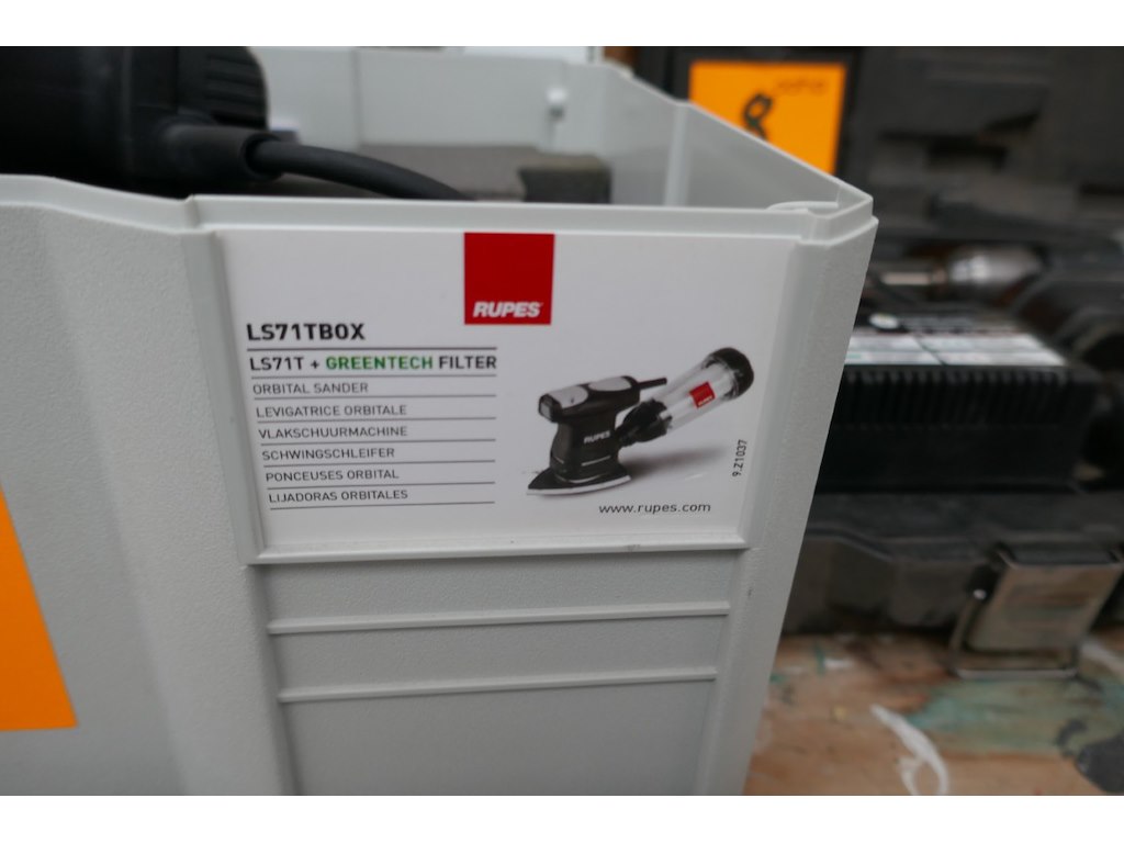 Elektrische vlakschuurmachine<br /> *merk : RUPES<br /> *model : LS71T<br /> *met koffer en greentech filter