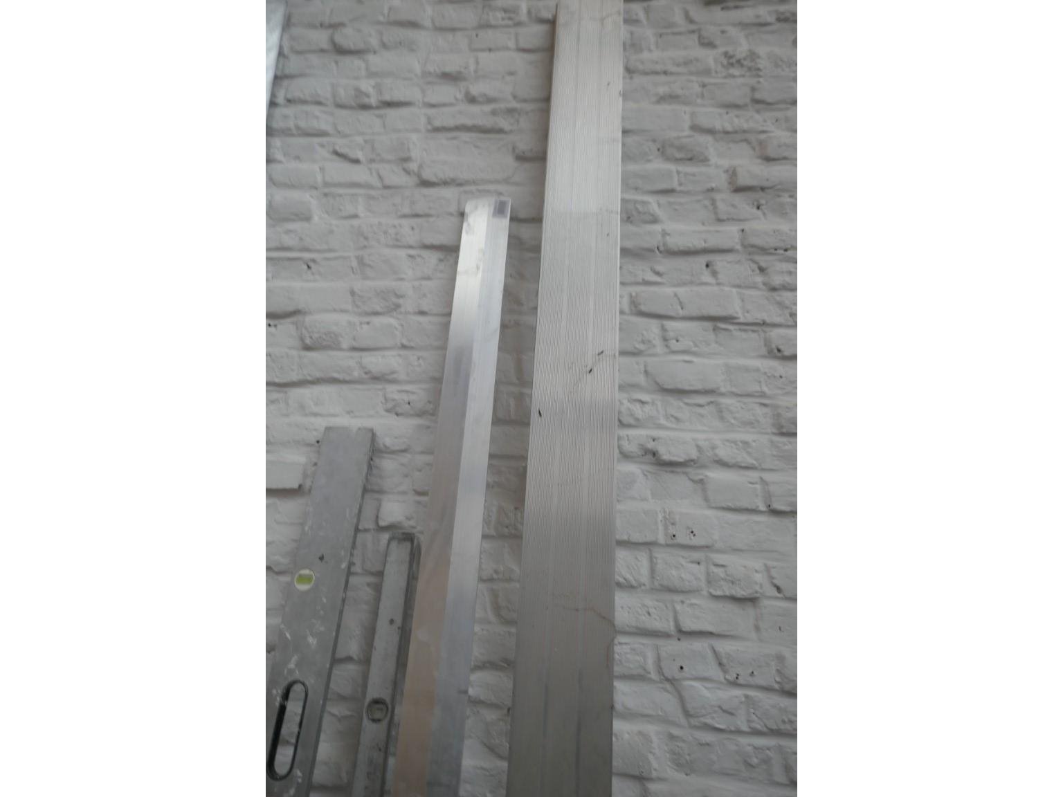 2 grote waterpassen - alu regels - bak met ratels en spanbanden