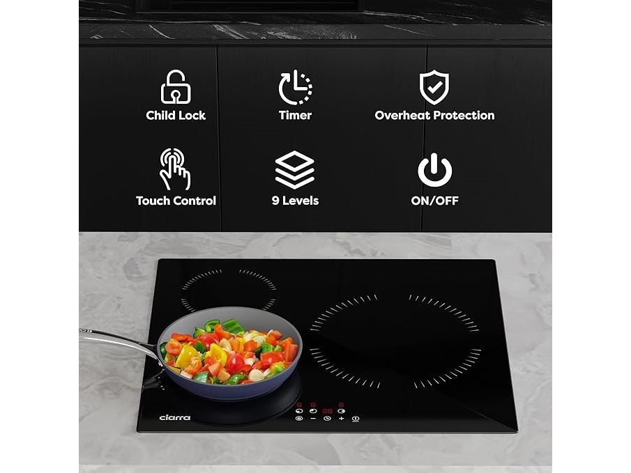 Minieme gebruikssporen, getest en werkend, volledig, ok, Ciarra CABBIH3-A Inbouw Inductieplaat (3 zones), 5600 W, 60 cm, glas, touch-bediening, timer, kinderbeveiliging, B0DR248N6Z
