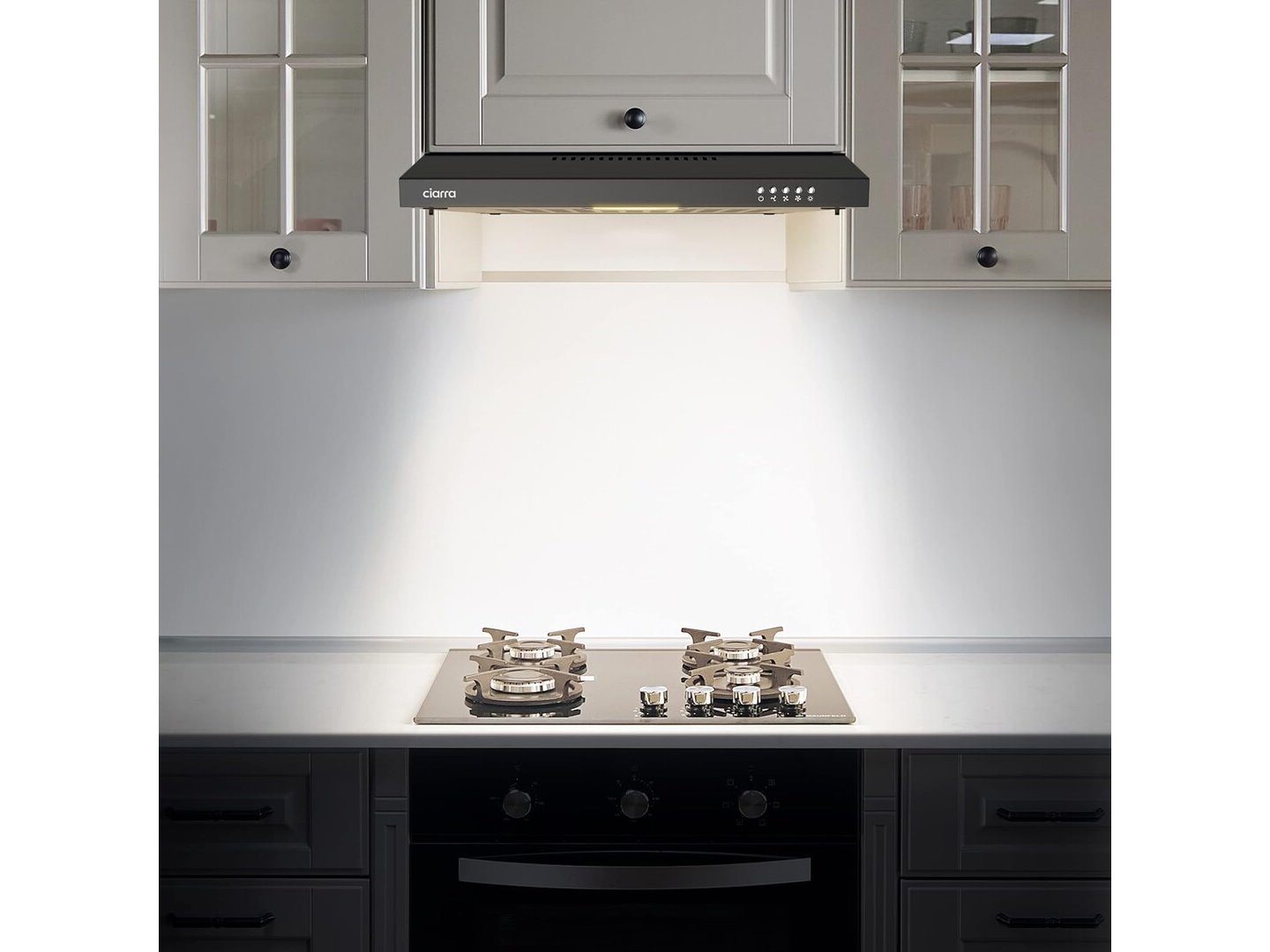 Ongebruikt, getest en werkend, volledig, ok, deukje aan bovenzijde, CIARRA CBCB6903 Afzuigkap (60 cm), Onderbouwkap, Afzuigkap, Muurkap, Energie-Efficiëntieklasse-C Afvoerlucht/recirculatiemodus Drukknopschakelaar, B06XPF4B8R