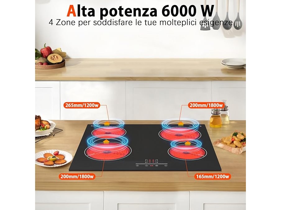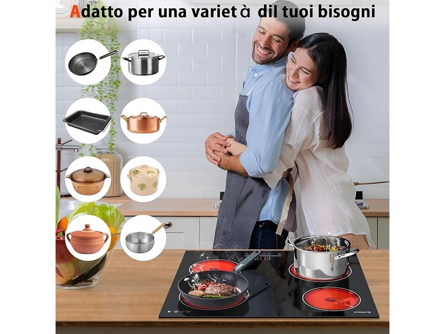 Ongebruikt, getest en werkend, volledig, ok, Karinear Keramische kookplaat, 4 kookplaten, 60 cm, 6000 W, schuifregelaar, 9 standen, veiligheidsvergrendeling, altijd pauze, timer, B0D6BB3LVY