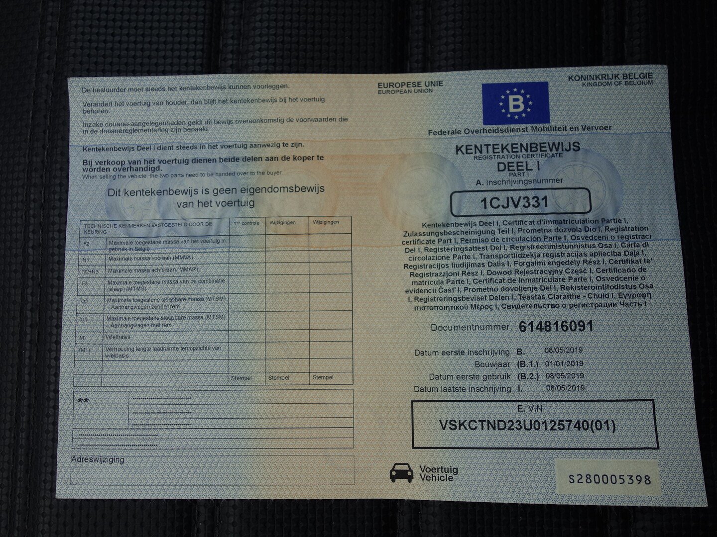 VIN:VSKCTND23VO125740<br /> 1ste Inschrijving: 08/05/2019<br /> Inhoud: 2298<br /> Vermogen: 140.00<br /> Km: 43 203<br /> Brandstof: Diesel <br /> Inschrijvingsbewijs: deel 1<br /> Gelijkvormigheidsattest: ok <br /> Keuring: 16/05/26<br /> euro norm: euro 6b<br /> Sleutels: 2<br /> Opmerkingen: exl verlichting op auto , papieren/sleutels te plaatse