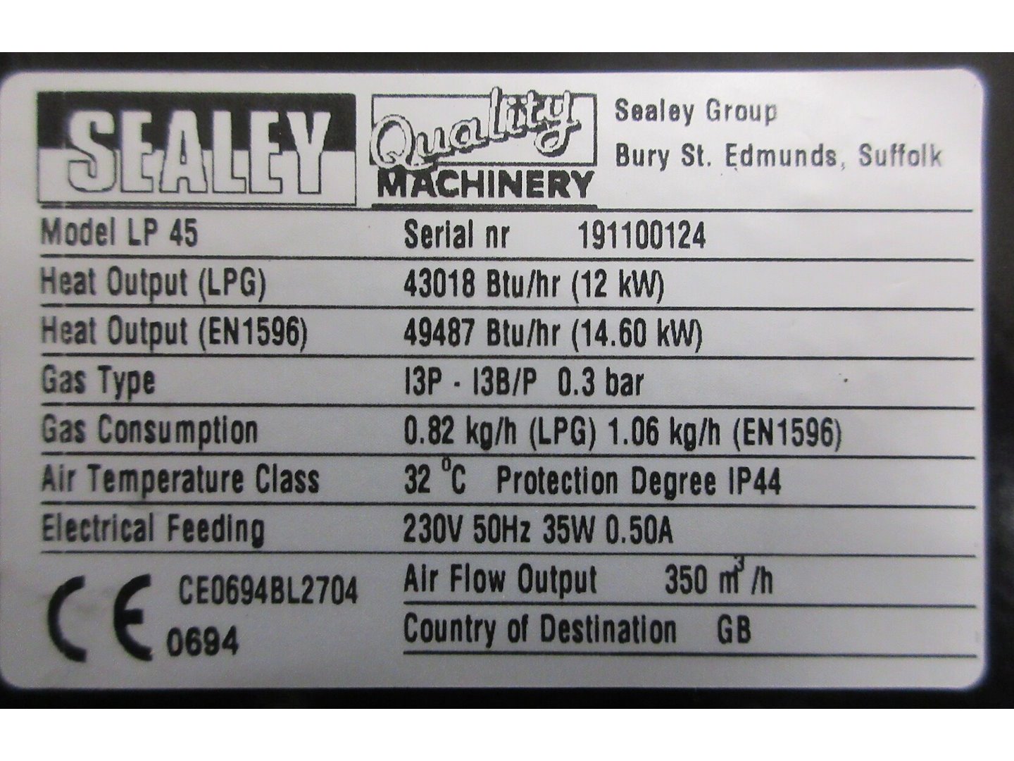 Sealey lp45 propaanheater (lpg)