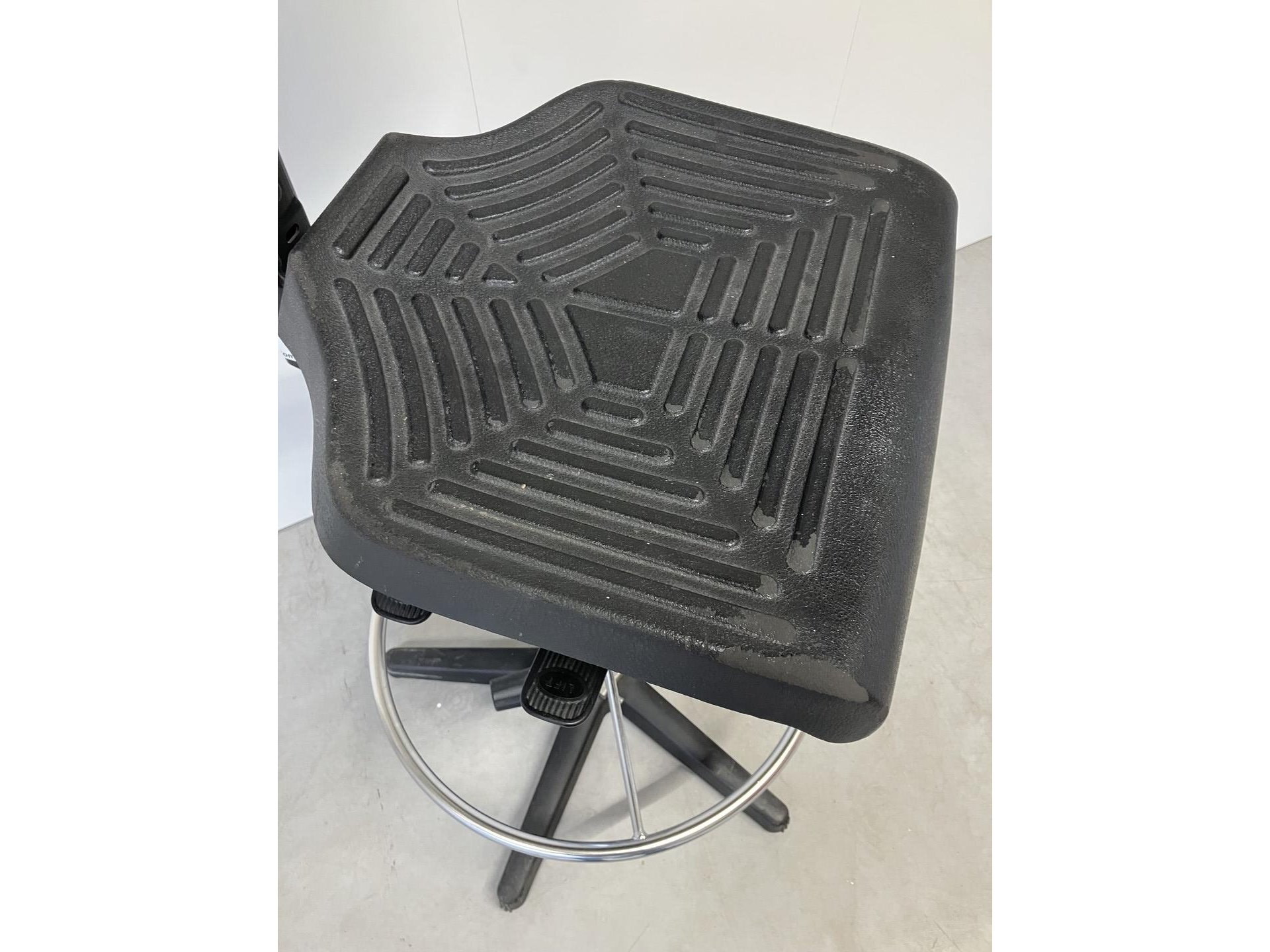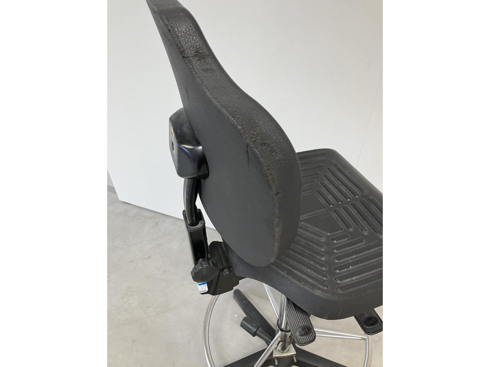 Materiaal rugleuning en zitting: Zacht PUR-schuim - Afmetingen rugleuning (BxH): 420x300mm - Kantelhoek rugleuning: -34° tot +30° - Kantelhoekverstelling met hendel - Hoogteverstelling met draaiwiel - Afmetingen zitting (BxD): 440x420mm - Kantelhoekzitting: - 14° tot + +5° - Kantelhoek en hoogte verstelling met hendel - Hoogtebereilk: 450 tot 640mm - Kunstof onderstel ø 630mm - Conditie: gebruiksporen maar in goede staat,<br /> Nieuw