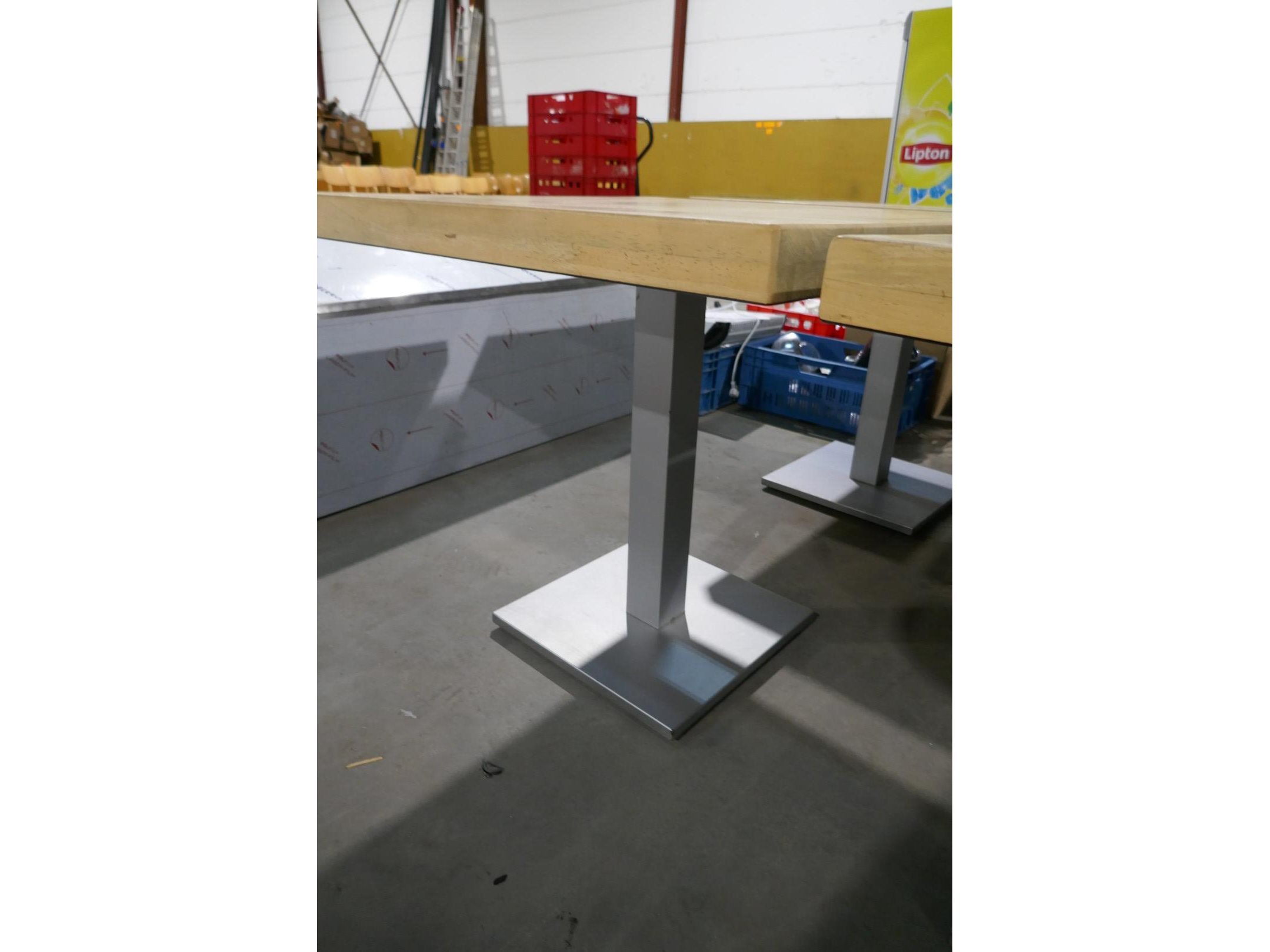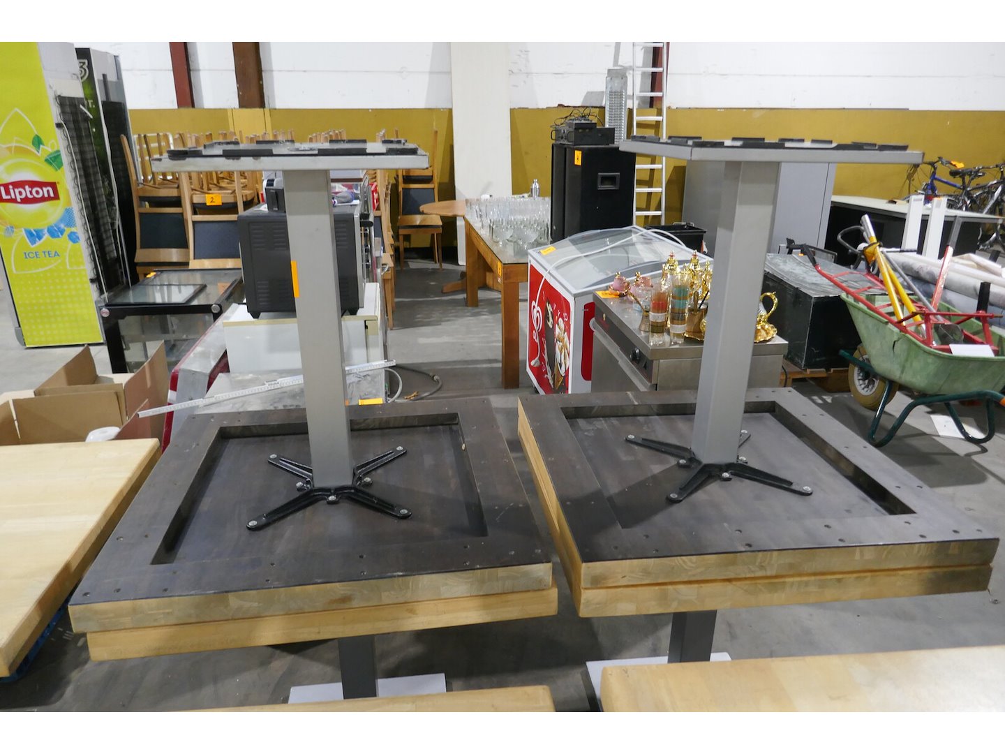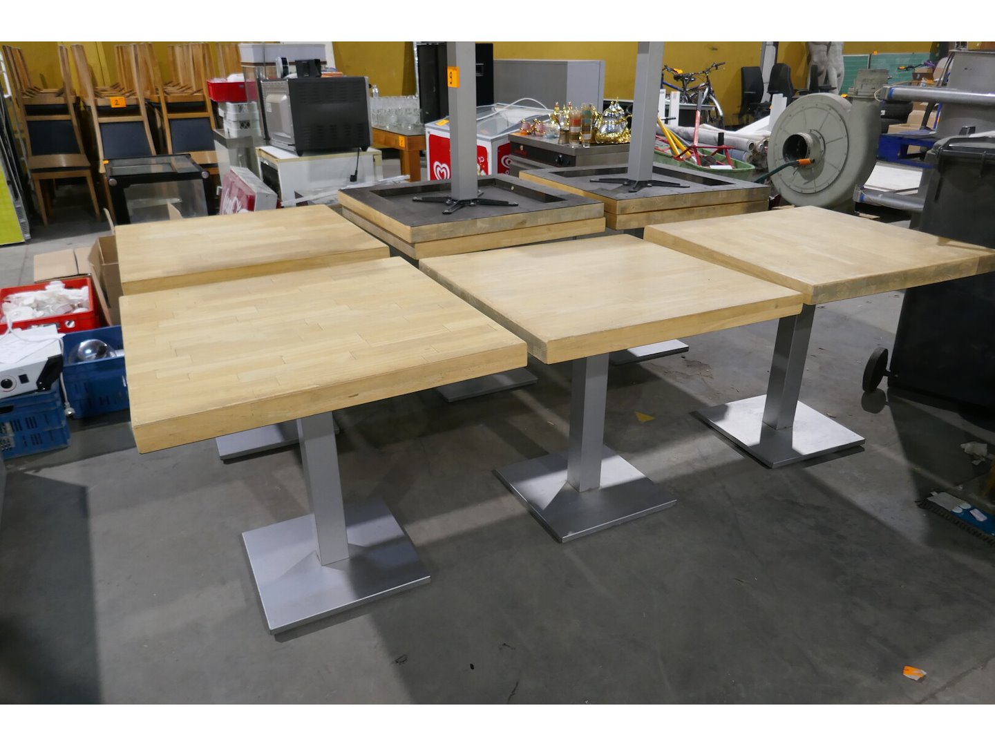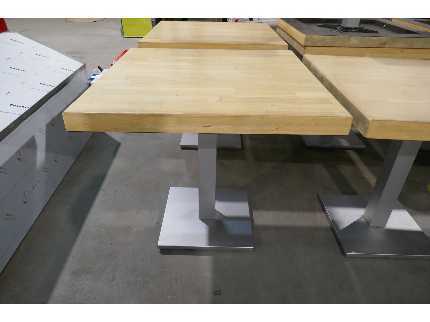 Op metalen voet en houten bovenblad - afmeting : 80x80 cm