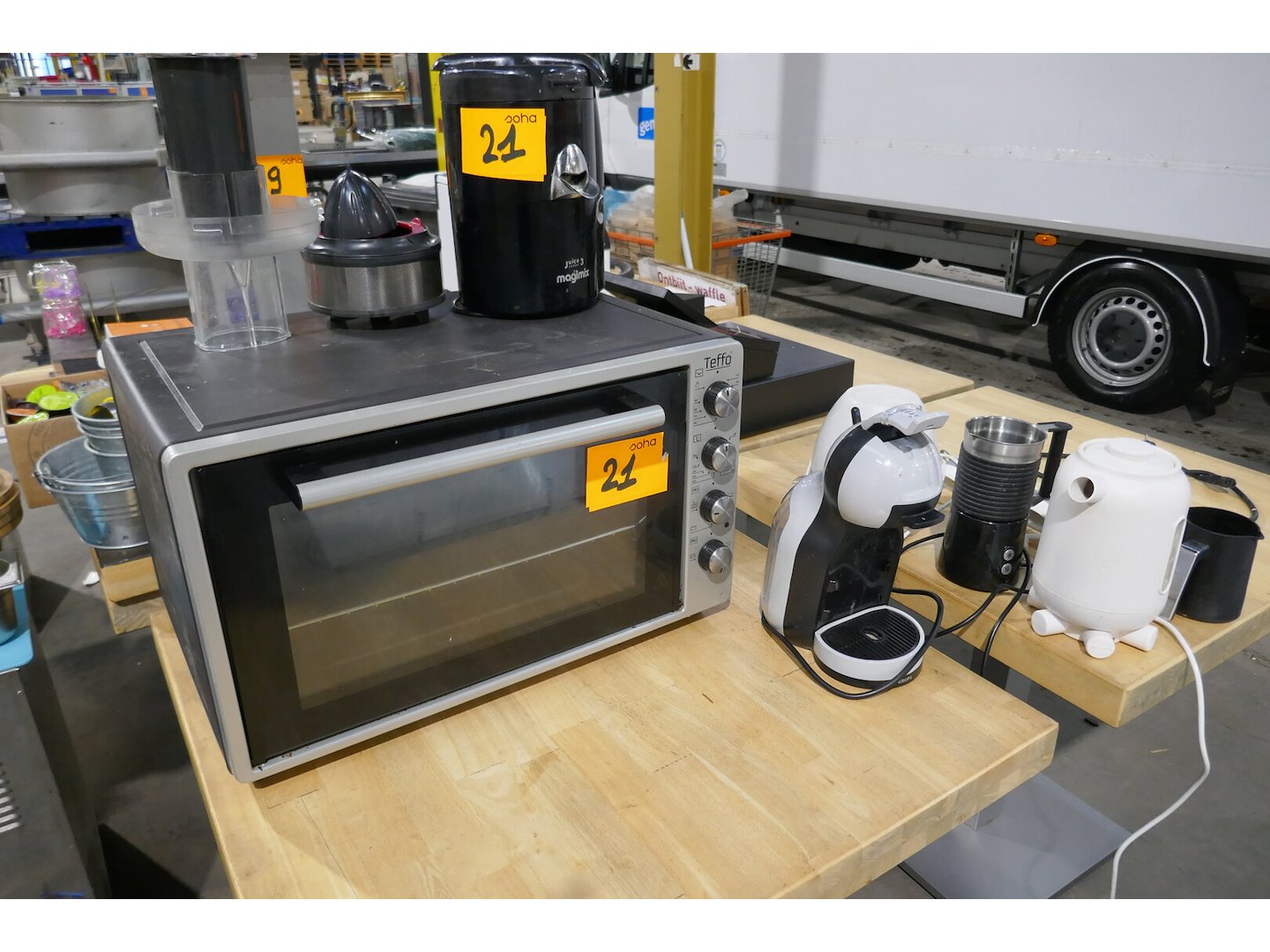 Elektrische bakoven - merk, TEFFO<br /> Fruitpers - merk, MAGIMIX<br /> Espressomachine - merk, KRUPS<br /> waterkoker en dergelijken<br /> Ventilator + 2 elektrisch vuurtjes
