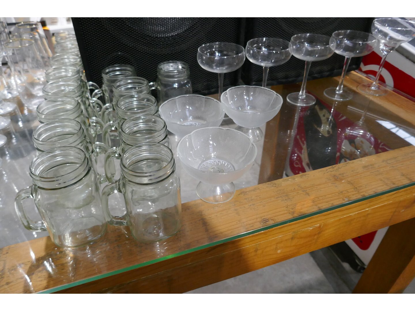 Assortiment aan diverse limonadeglazen en ijscoupes