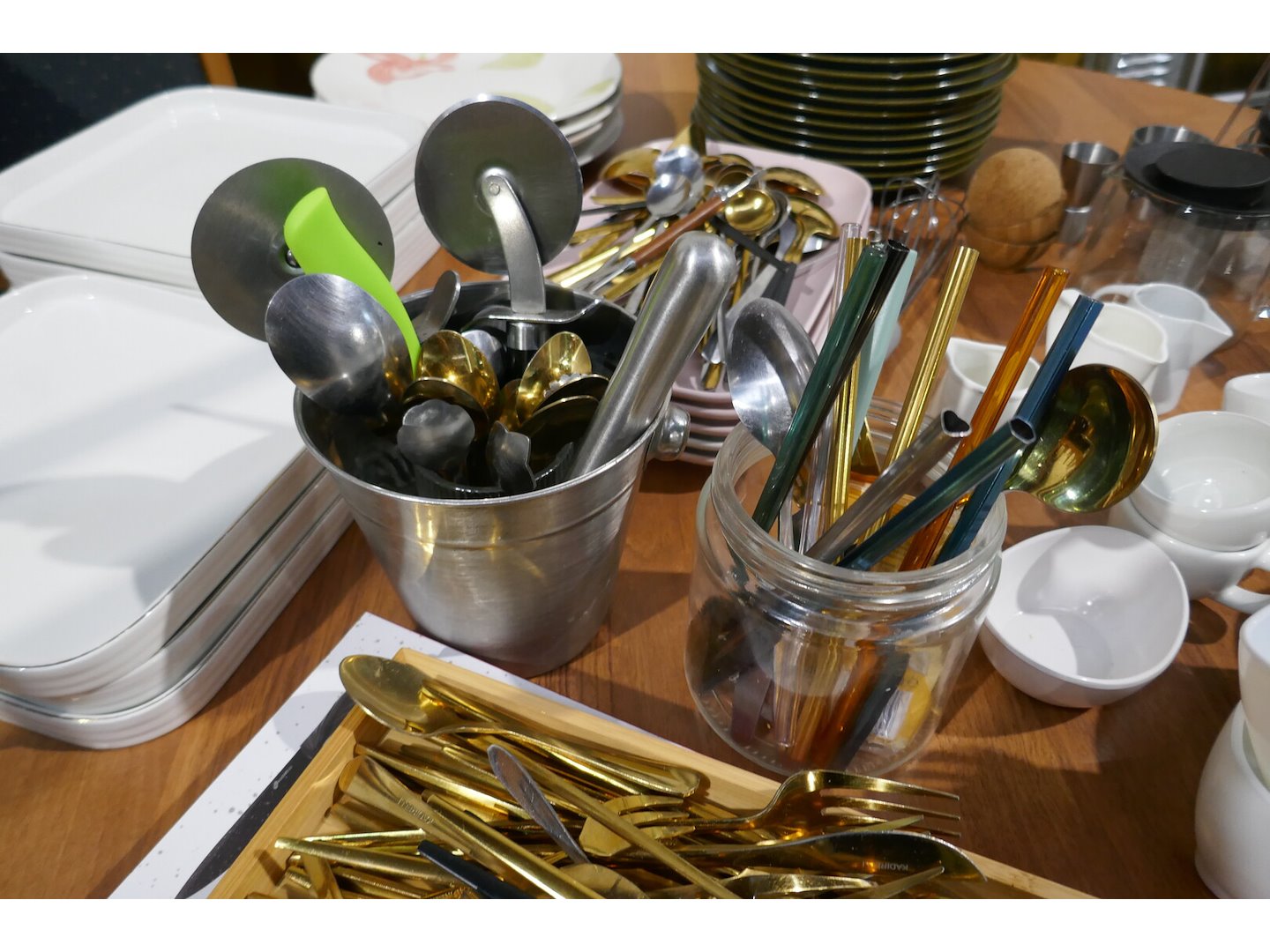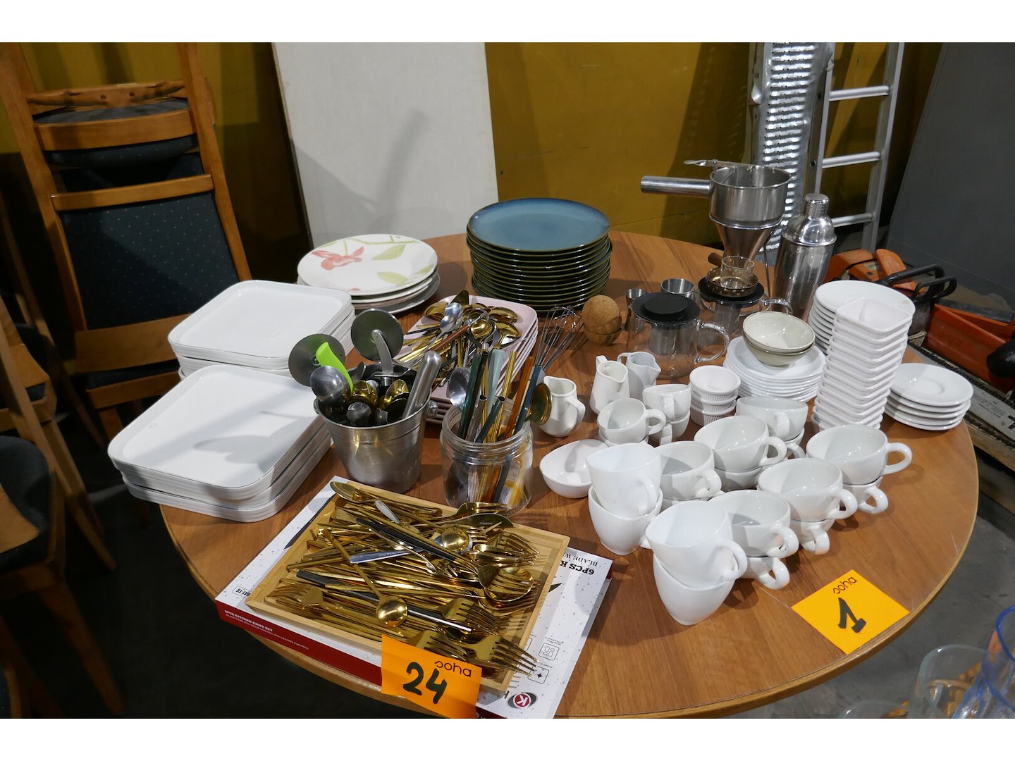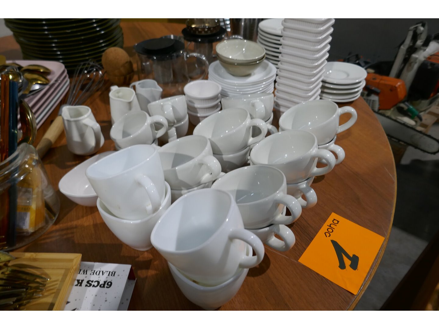 Eetborden - dessertborden - vorken en lepels - koffiekopjes enz…