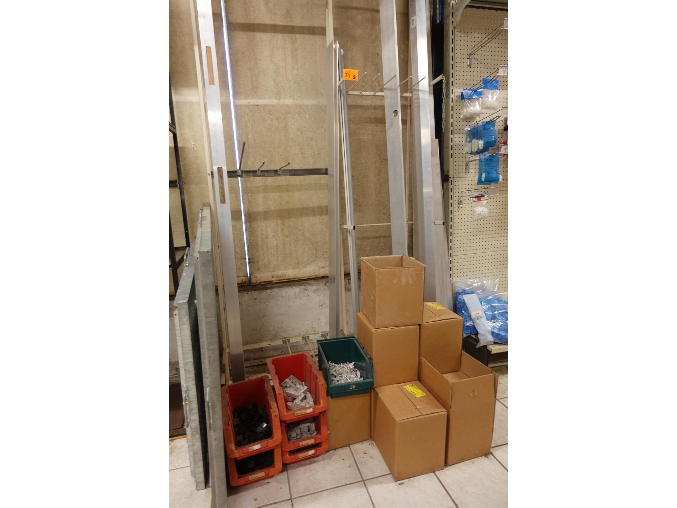 Plm 11 items, oa: regels, profielen, waterpas en diverse dozen toebehoren