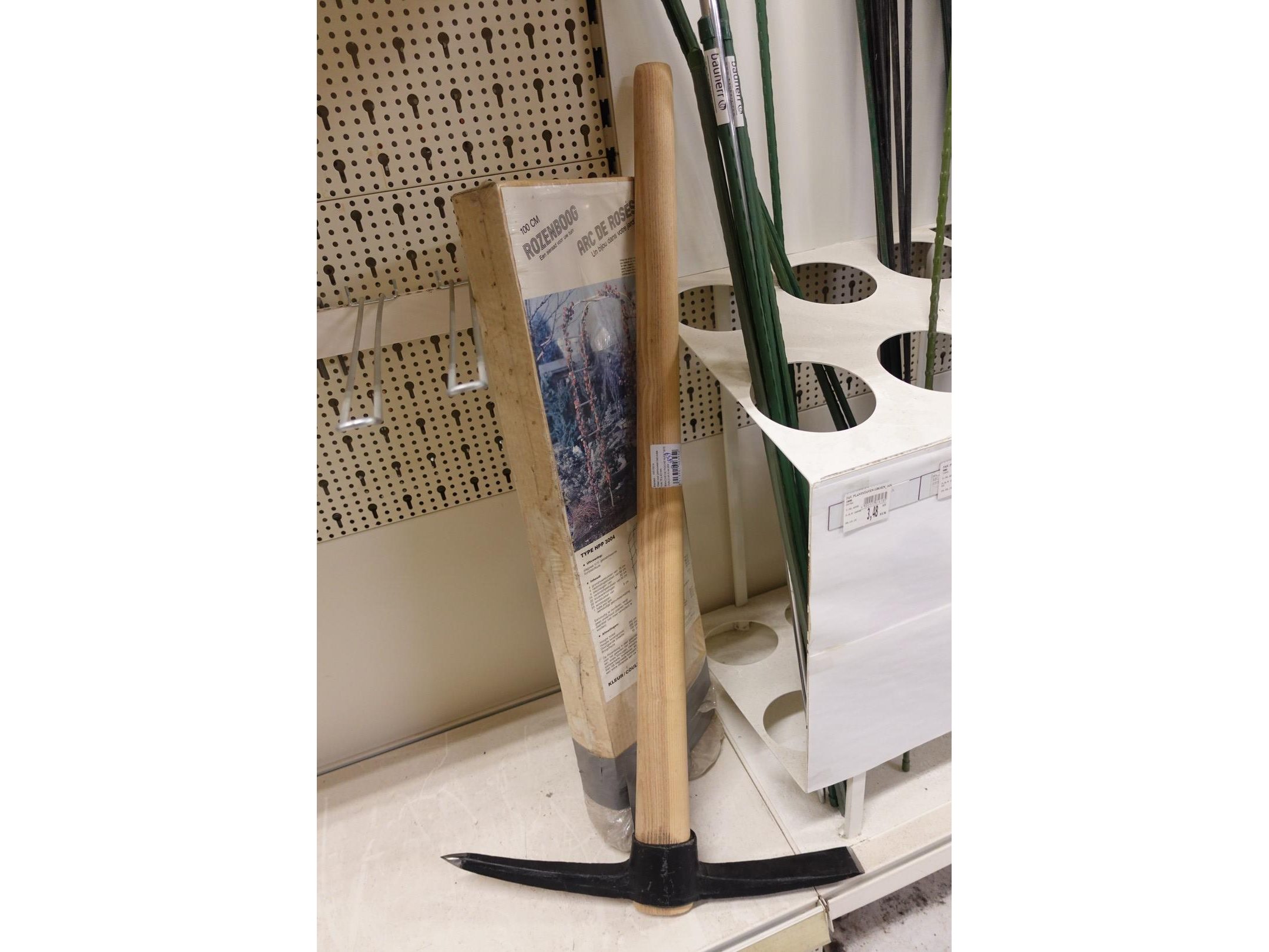 Plm 75 items, oa: schoppen, spuitkappen, houweel, muurhaspel, rozenboog,...