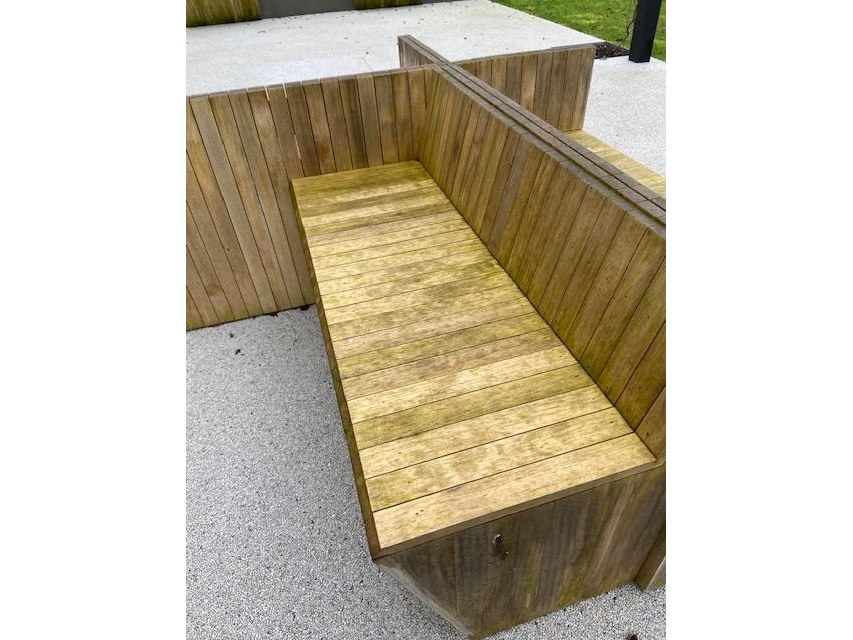 Accoya hardhouten bank compositie, voor 3 tot 4 tafels , afmetingen zie foto s
