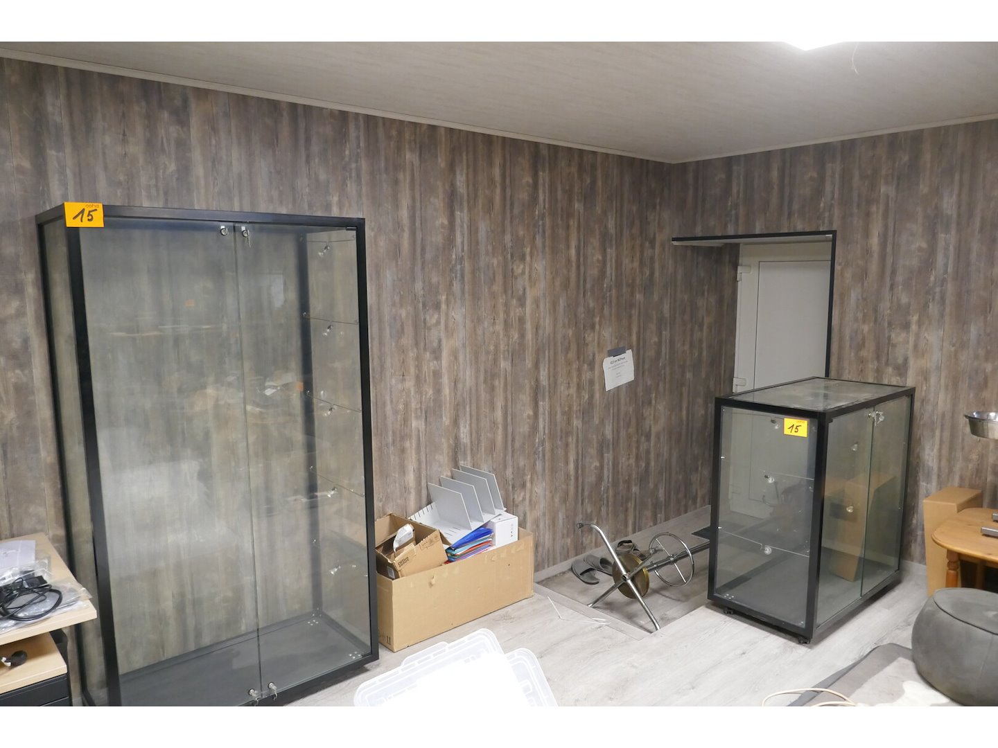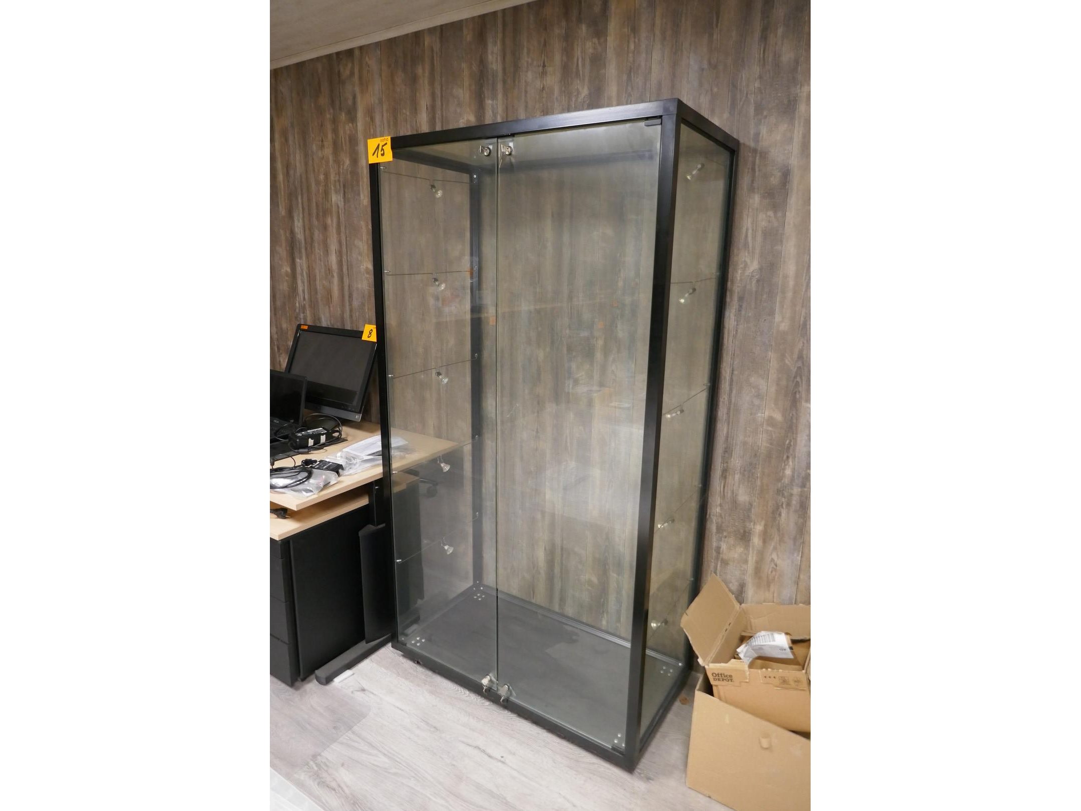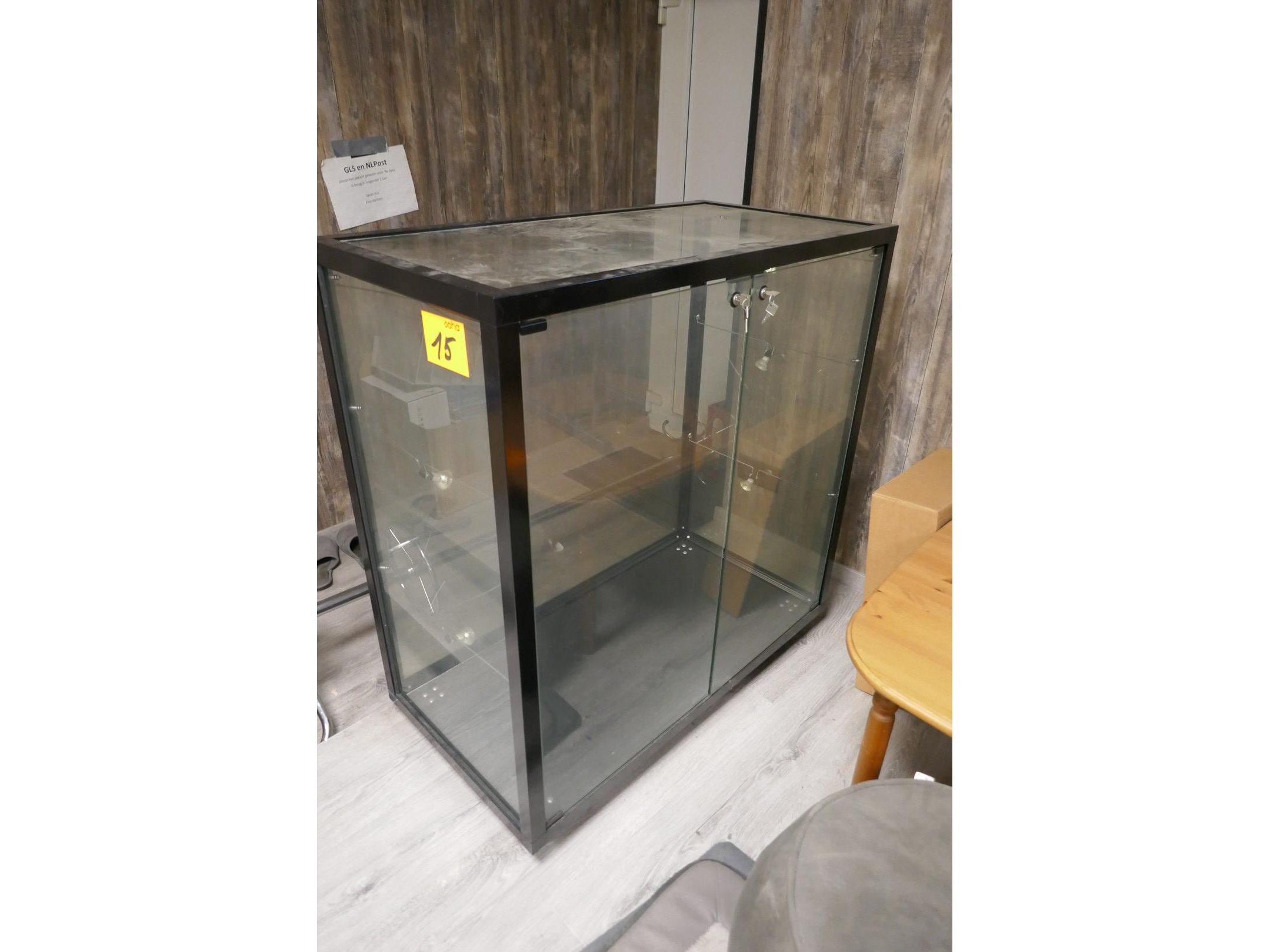 2 zwartmetalen vitrinekasten