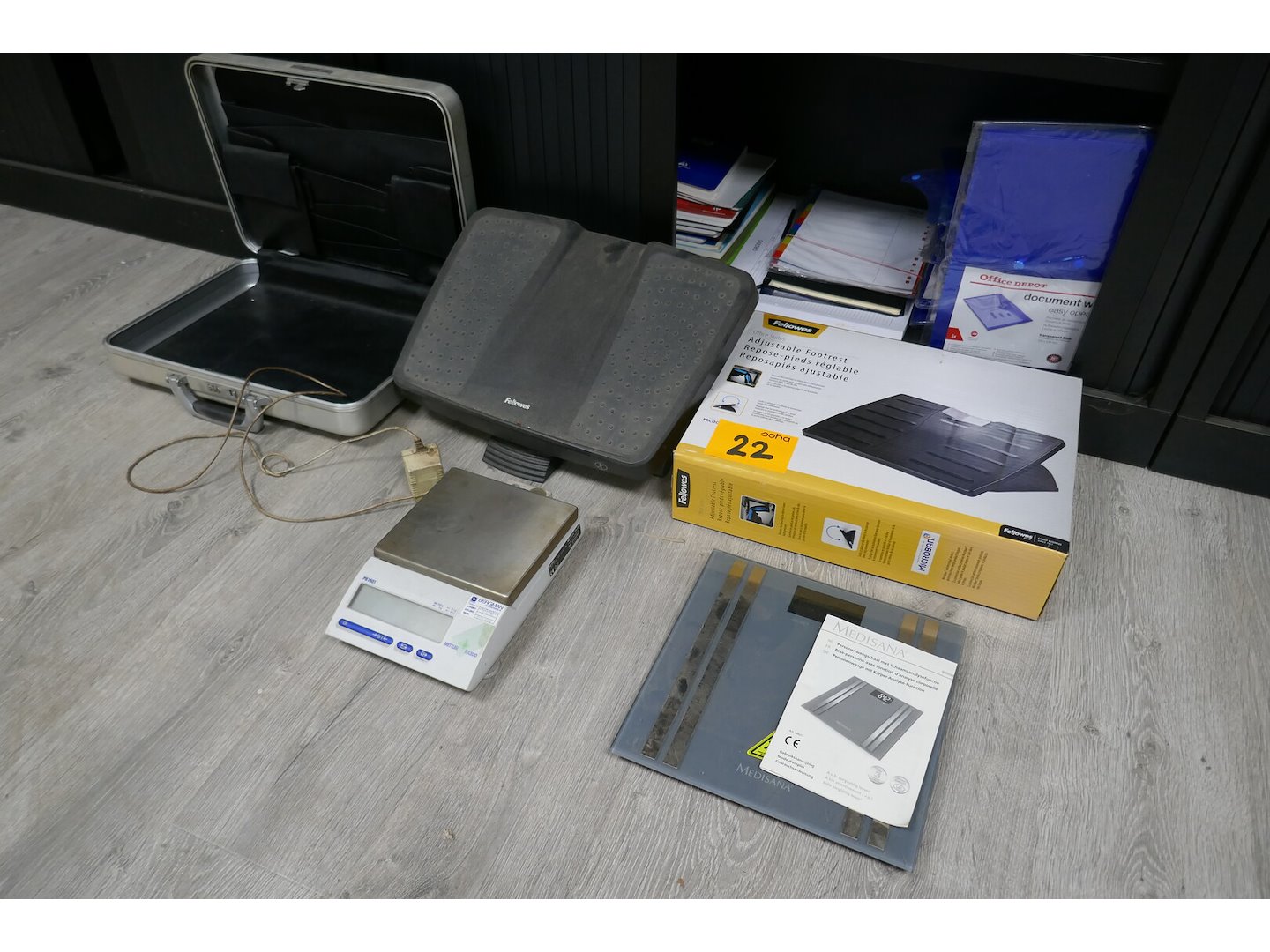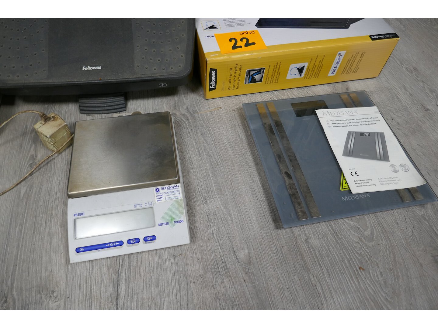 Voetensteun - merk, FELLOWES<br /> Personenweegschaal - merk, MEDISANA<br /> Digitale weegschaal - merk, BERGMAN