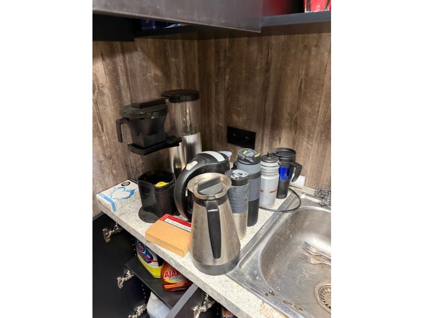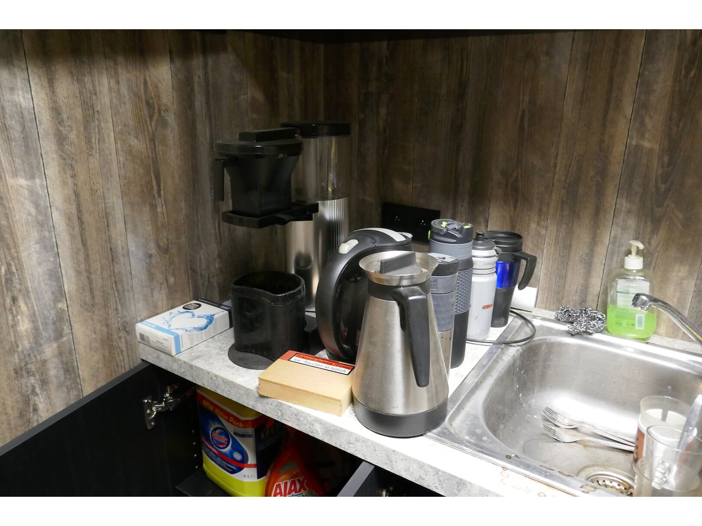 Poetsprodukten - koffiezetapparaten - borden - koffiekopjes - poetsgerief - vuilbakken - koelkast tafelmodel - enz….