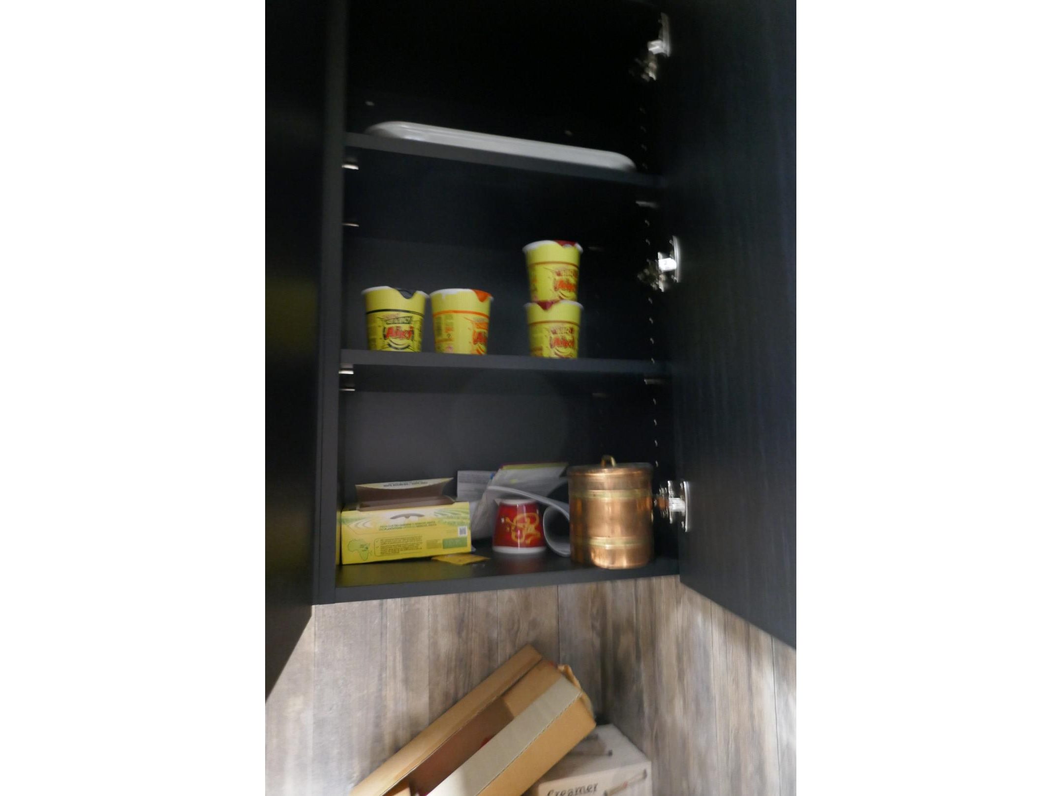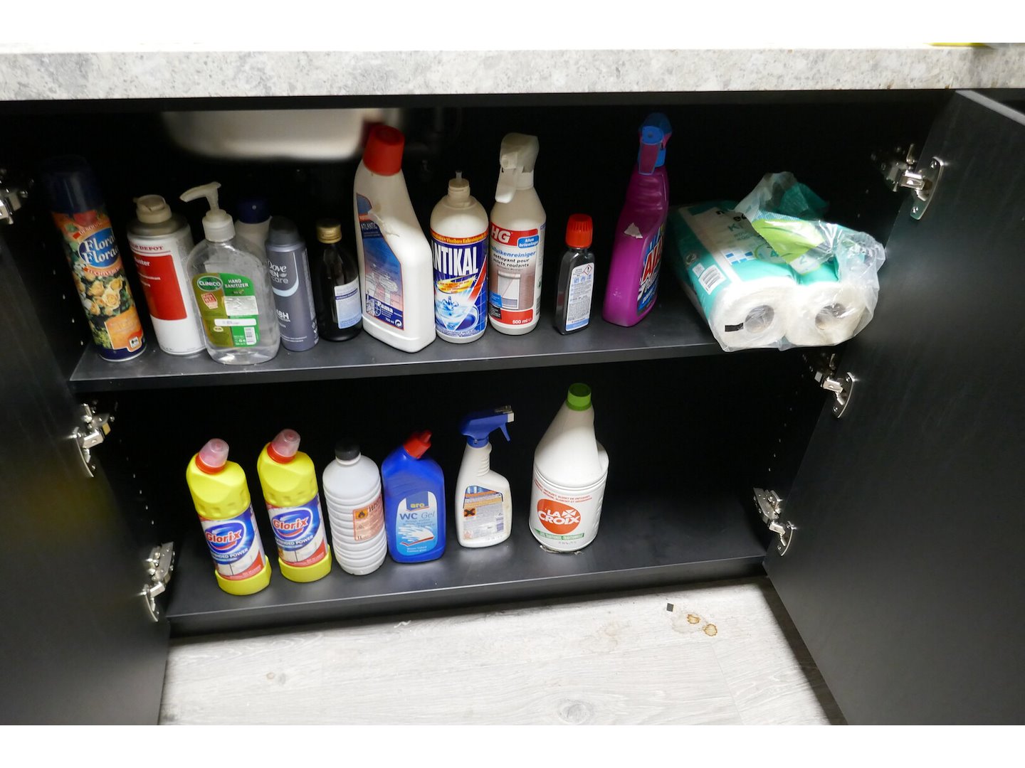 Tafelfrigo & onderhoudsmateriaal & inhoud keukenkasten