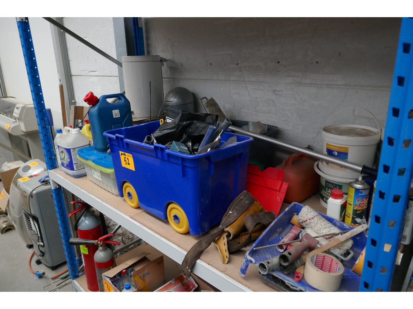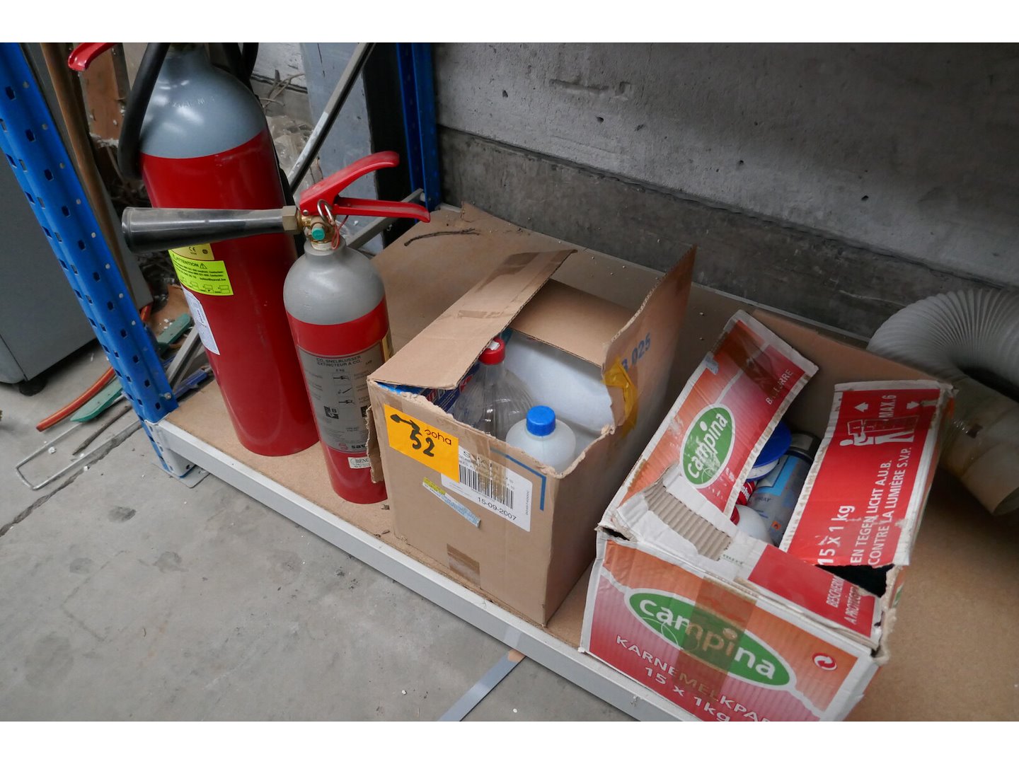 Diverse poetsprodukten - schildergerief - 2 snelblussers - verfprodukten - enz..