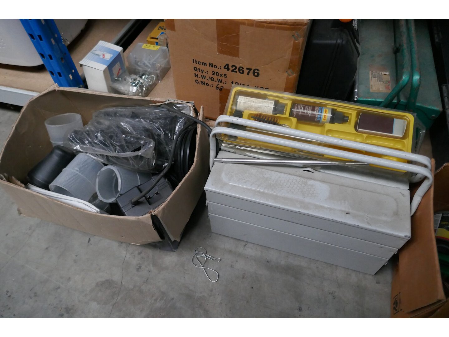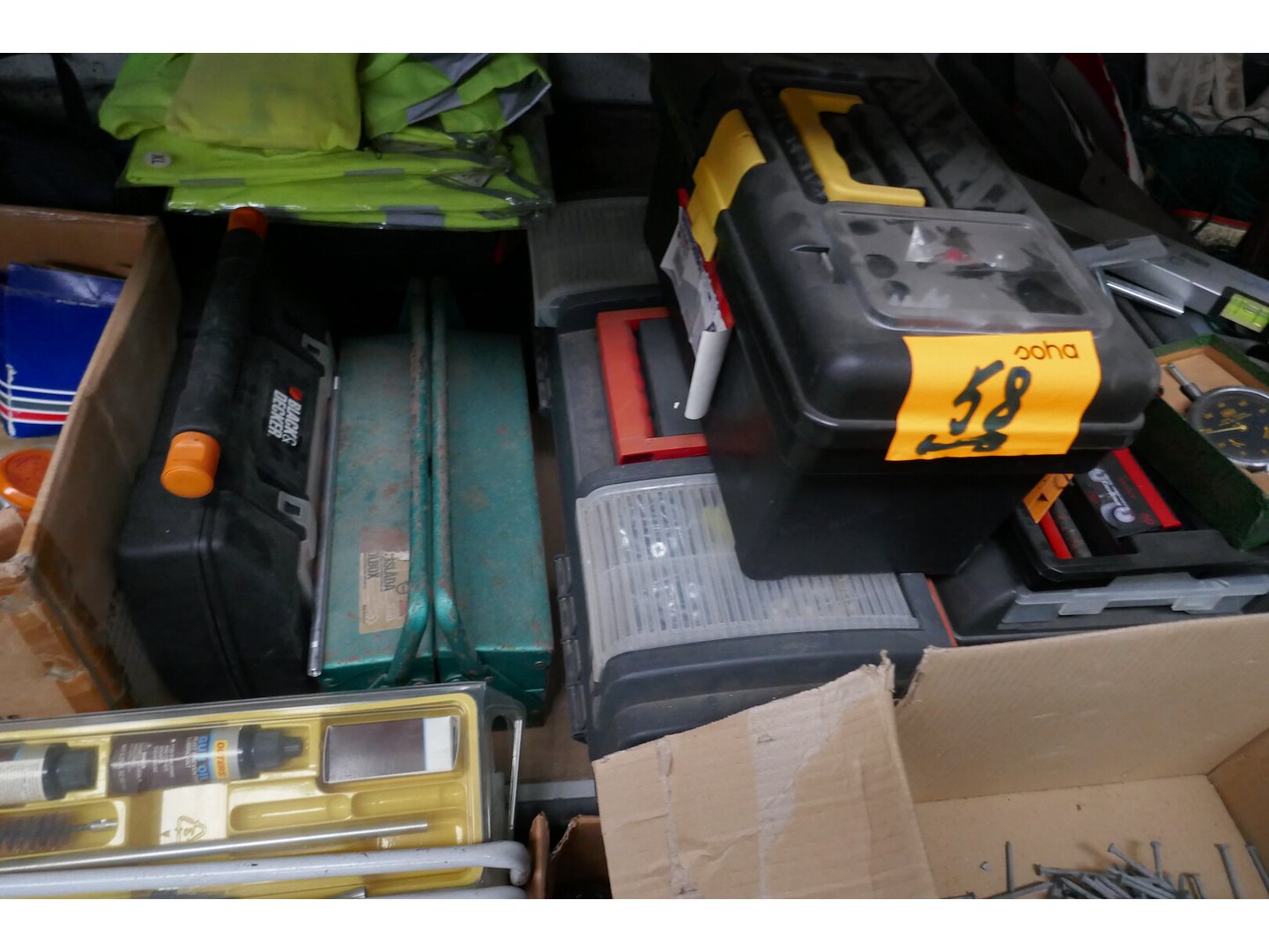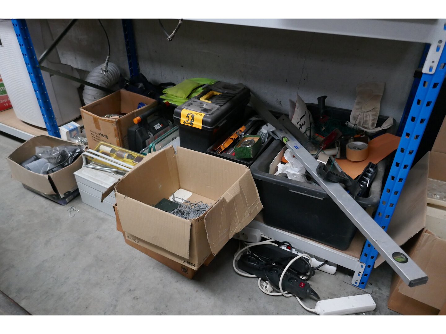 Gereedschapskoffers - werkgereedschap - waterpas - bevestigingsmateriaal - elektrische verdeeldozen - fluohesjes - enz…..( groot lot )