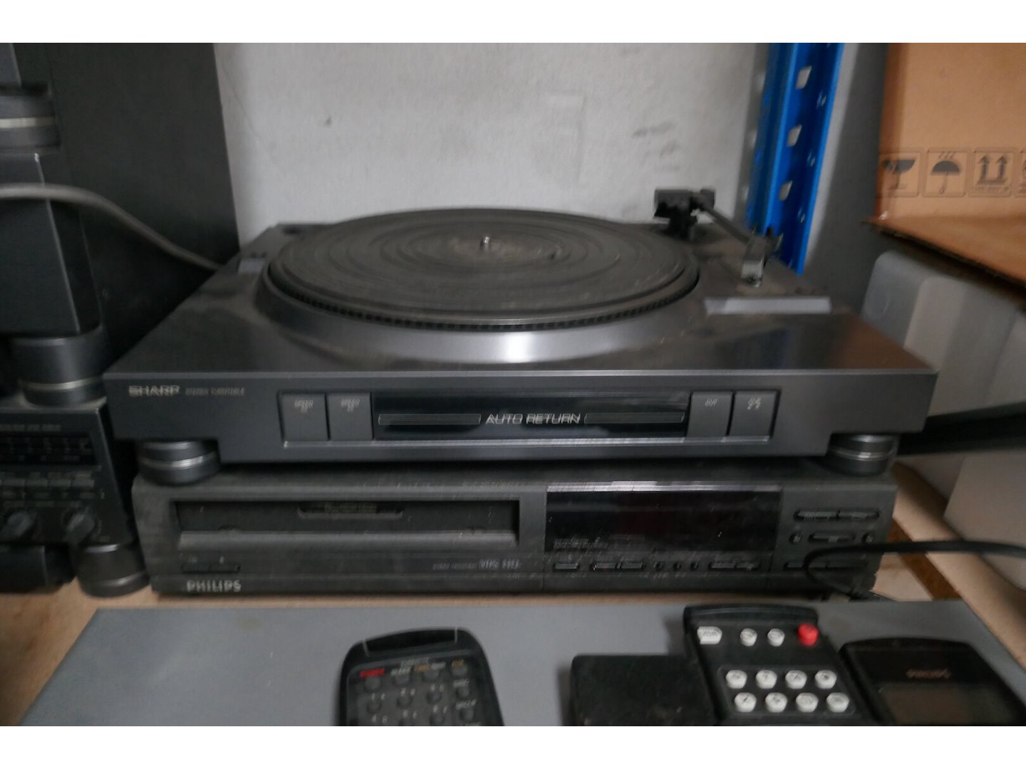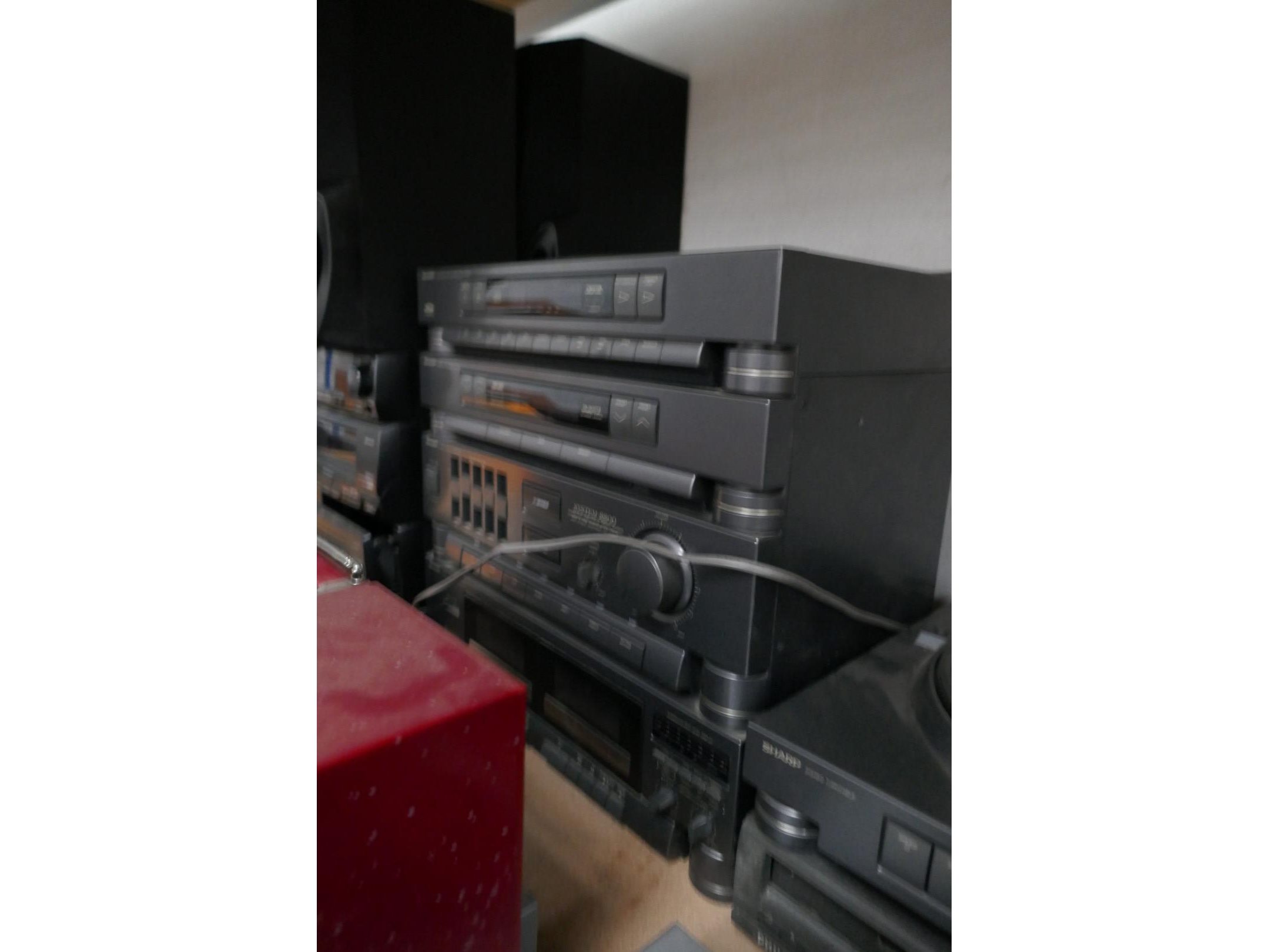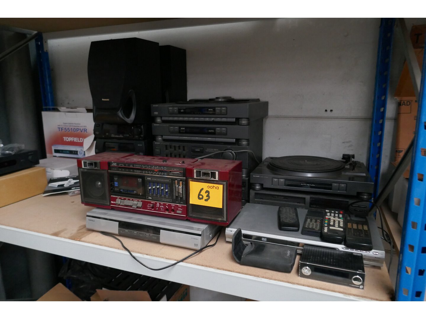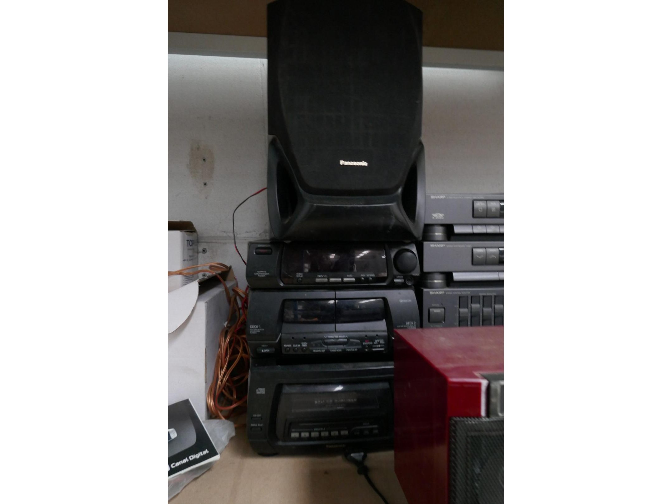 Vintage draagbare radio, stereo installatie, platendraaier, DVD speler en luidsprekers <br /> *merken : SHARP/JVC/PANASONIC/TOPFIELD