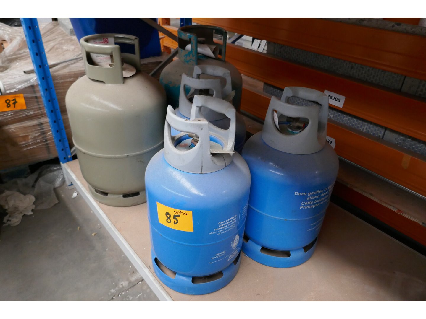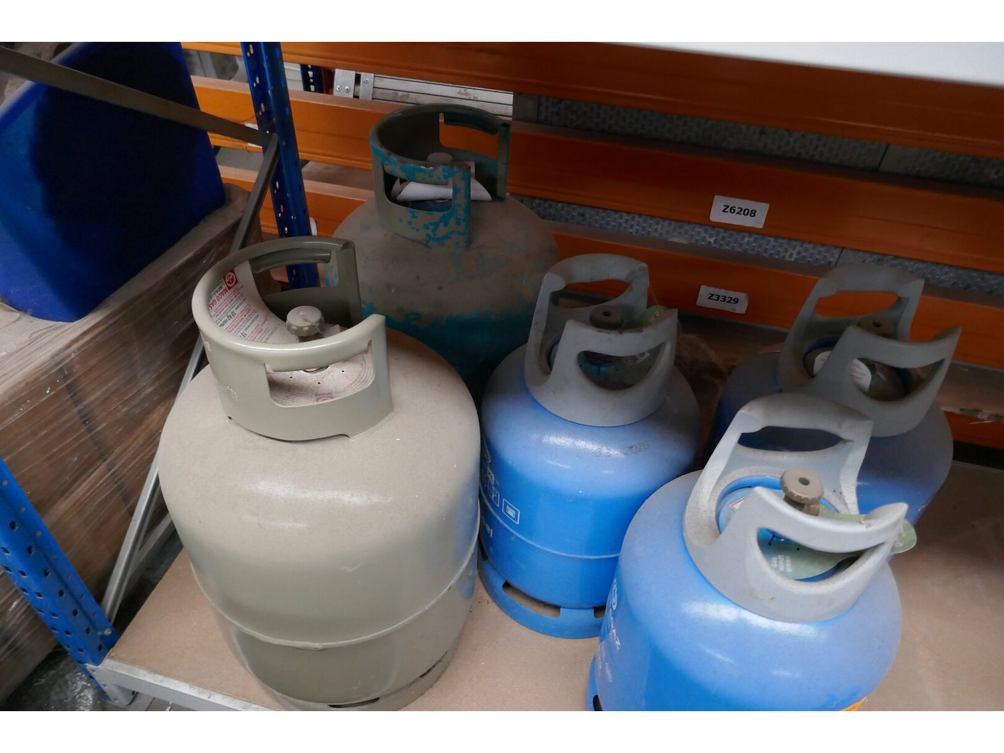 5 lege gasflessen