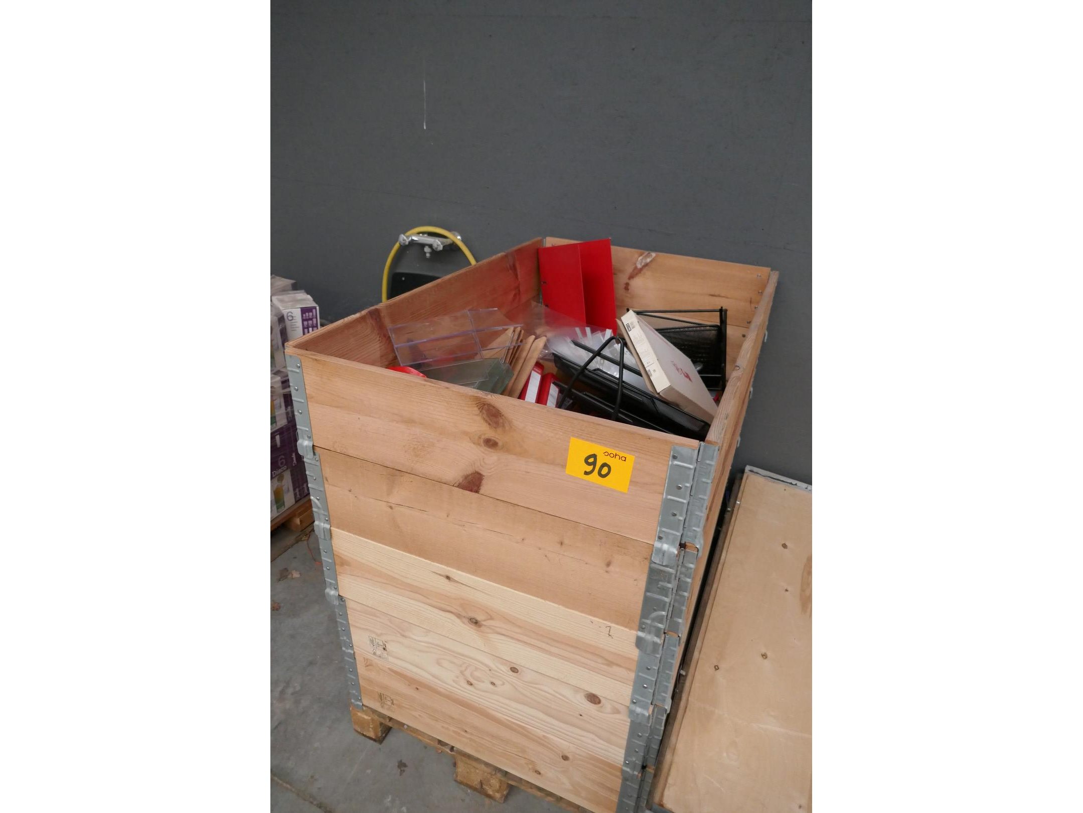 Pallet met opzetranden + zeer voorname partij bureelgerief