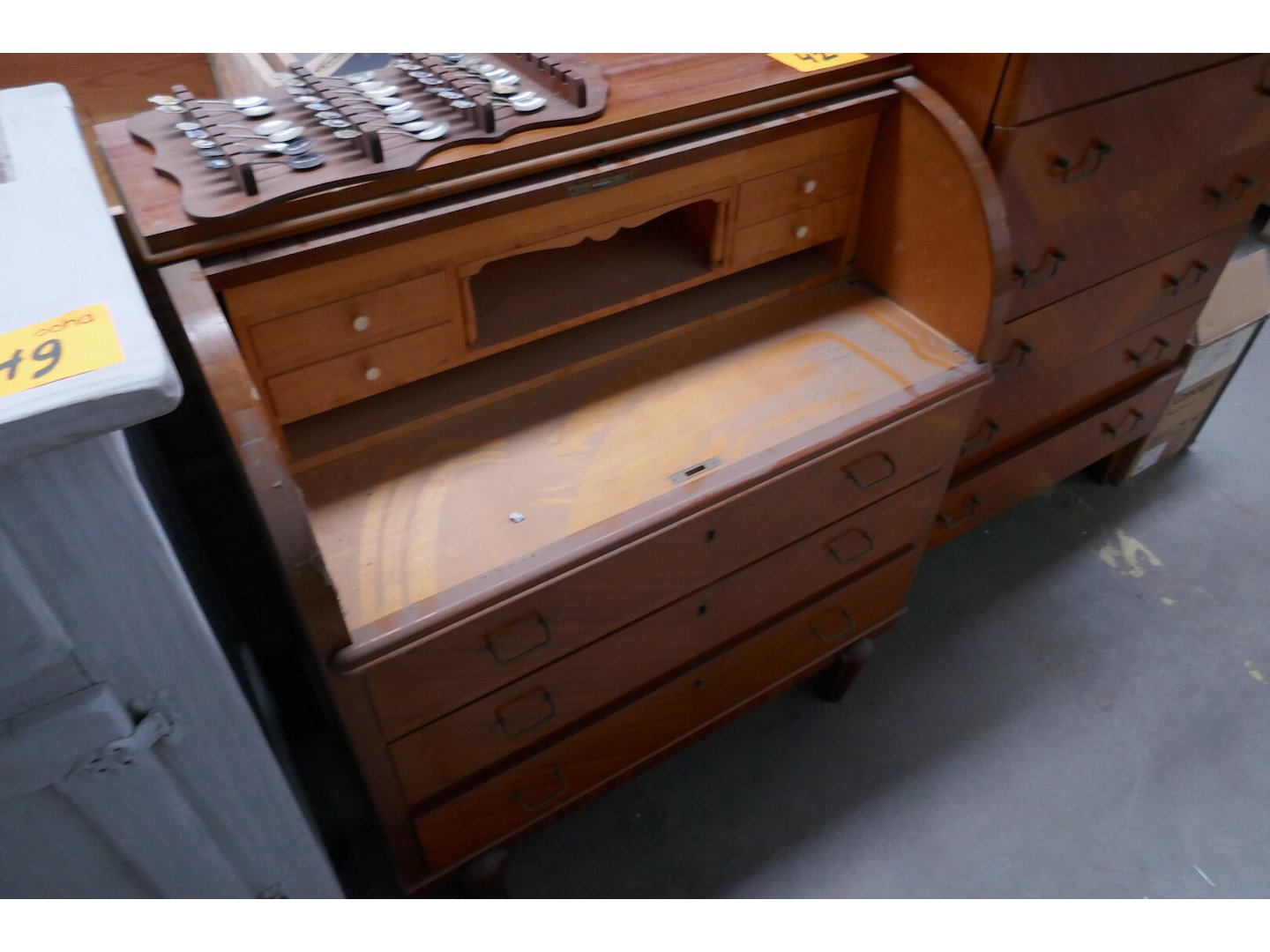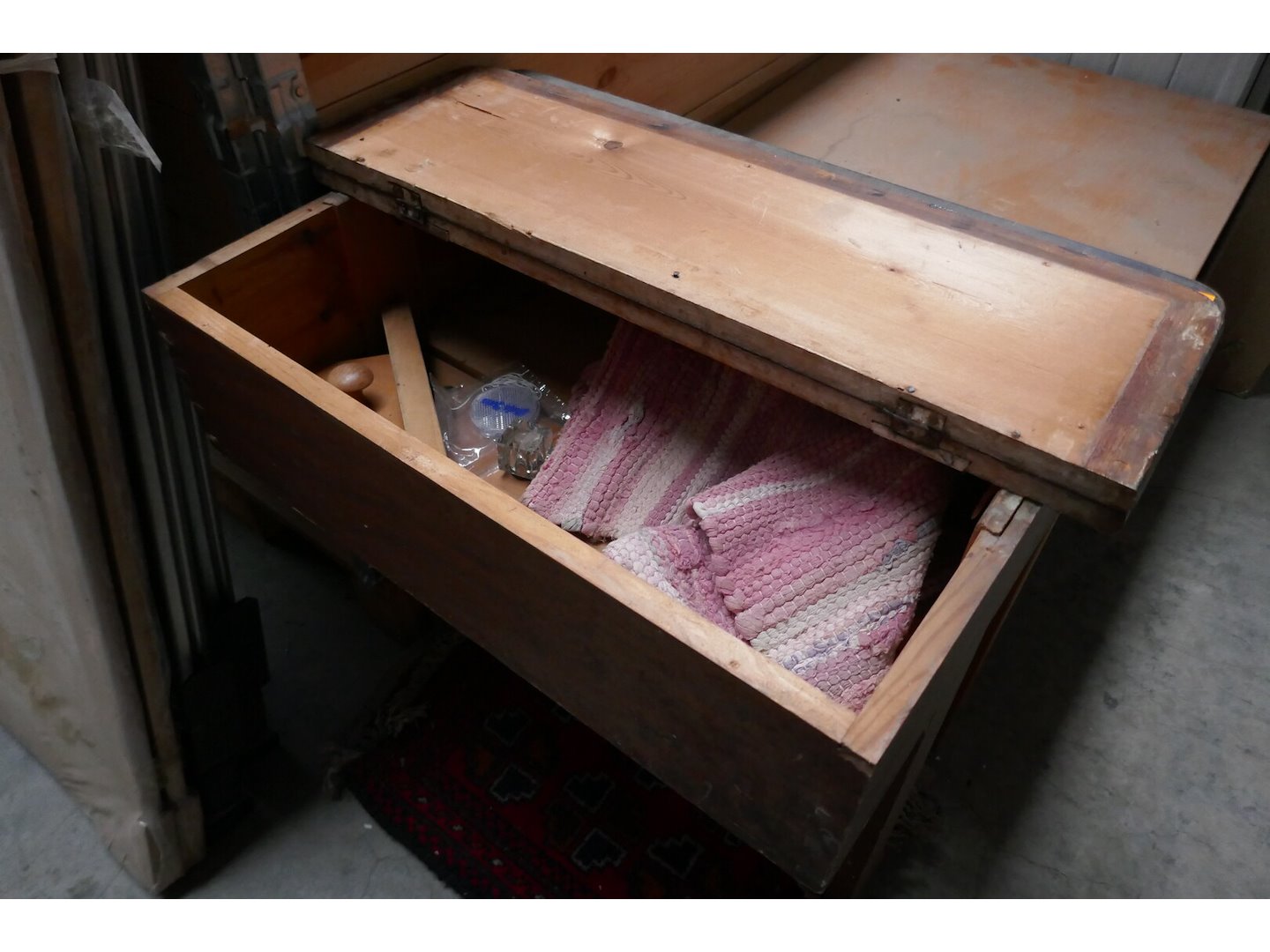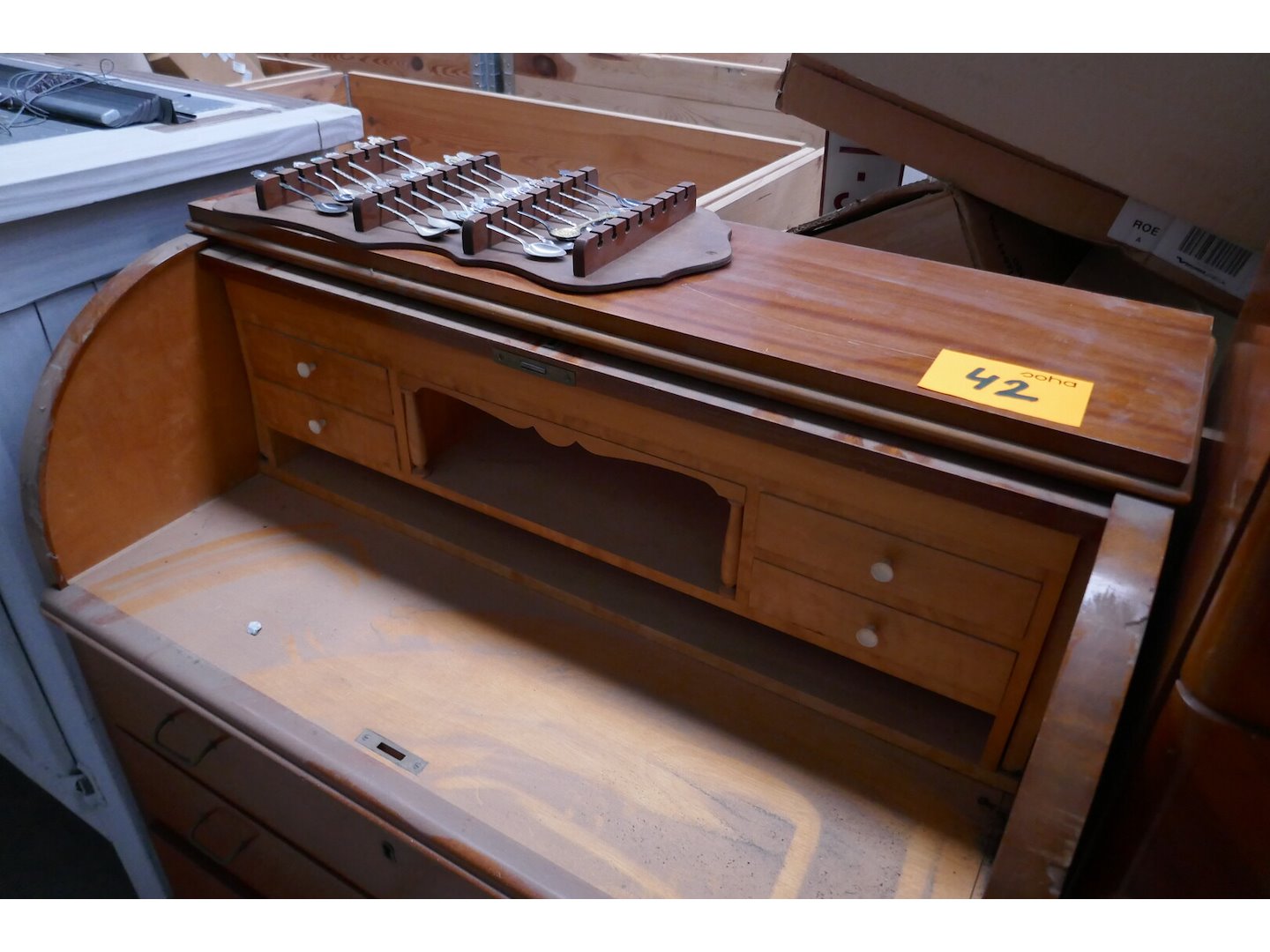 Vintage kastje met 6 laden - antieken bureautafel - vintage rekje met lepels - antieken schoolbankje - houten bijzettafeltje