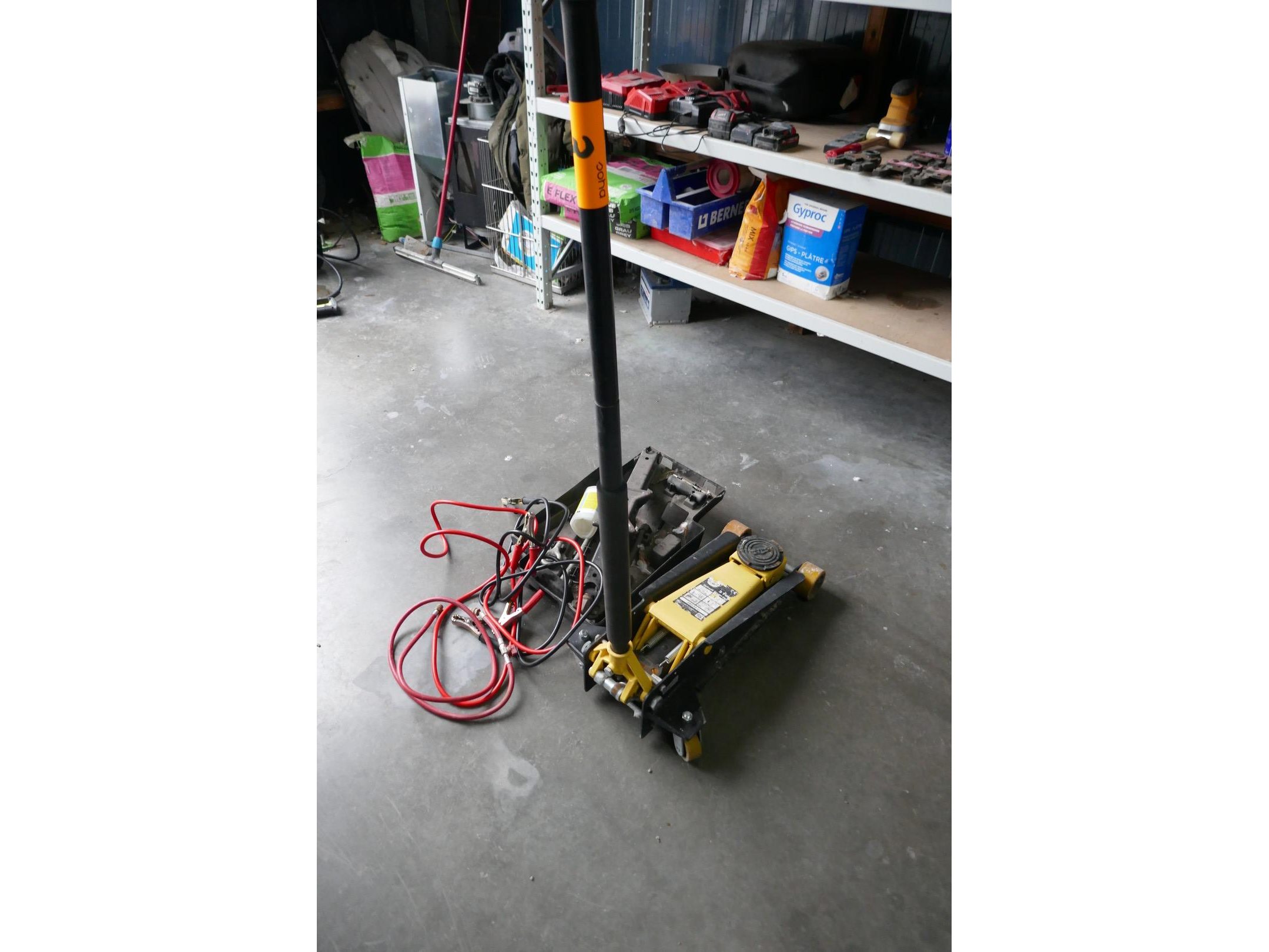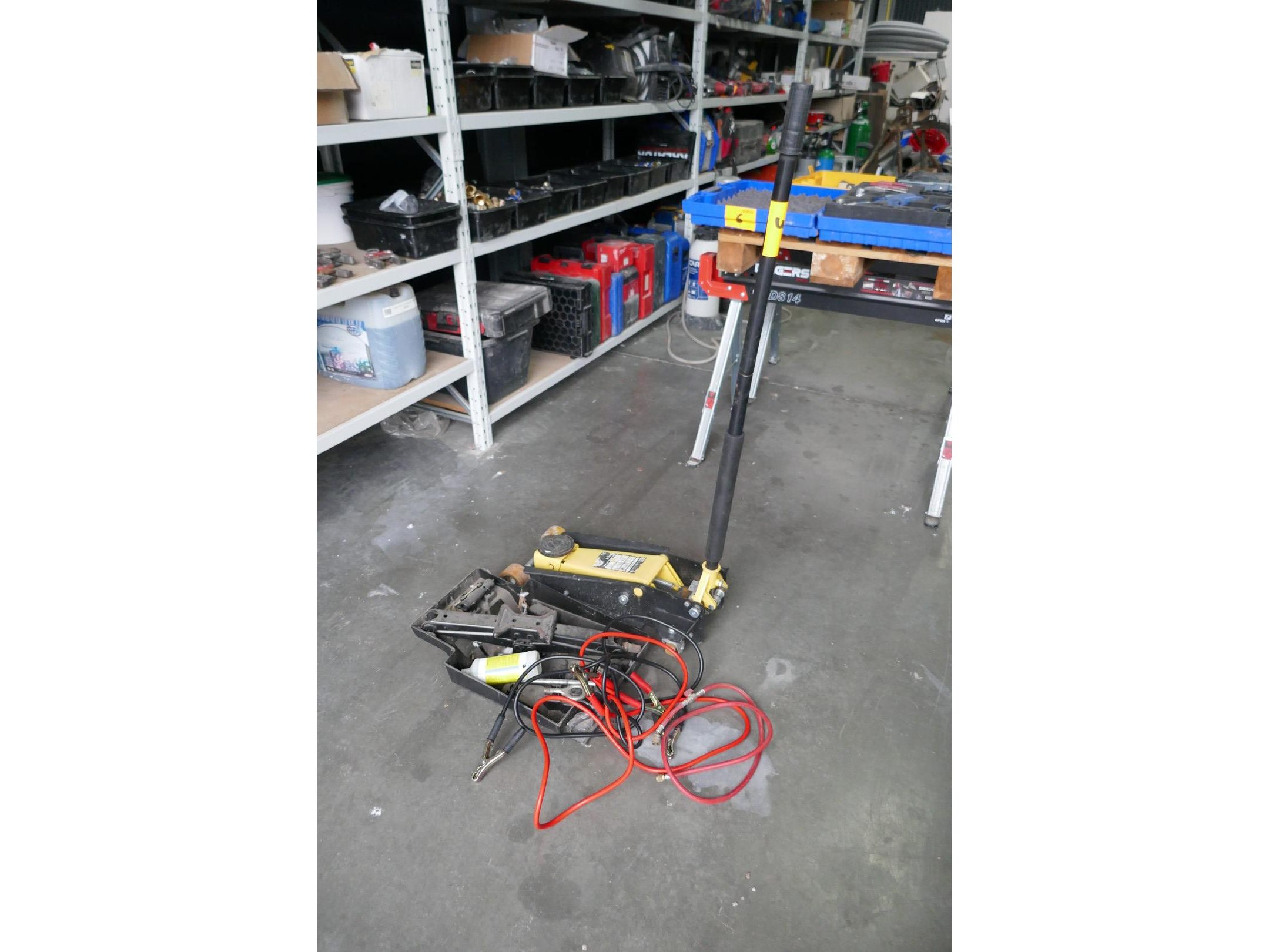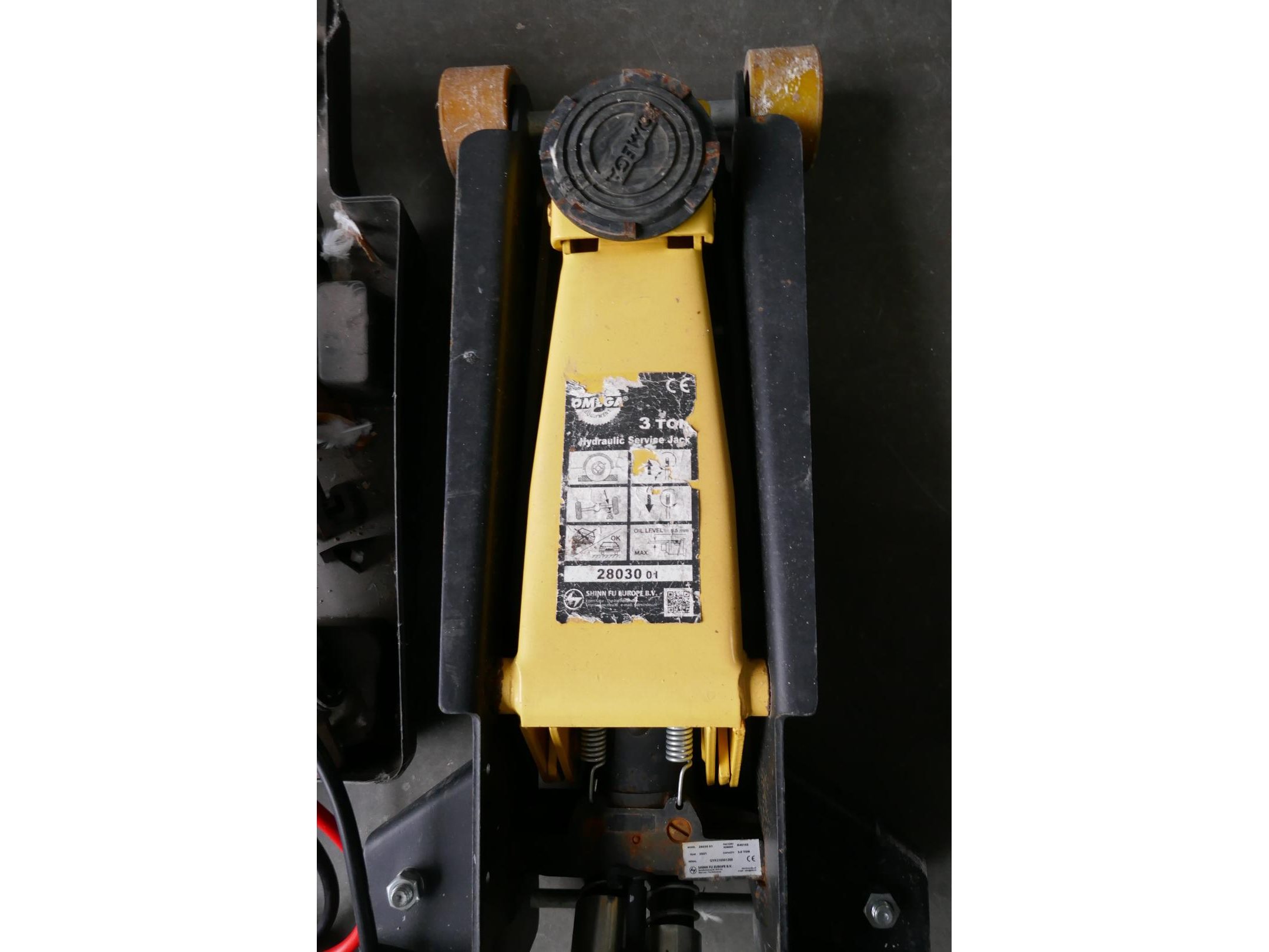 Hydraulische garagekrik 3 ton - merk, OMEGA<br /> Schaarkrik met koffer + startkabels