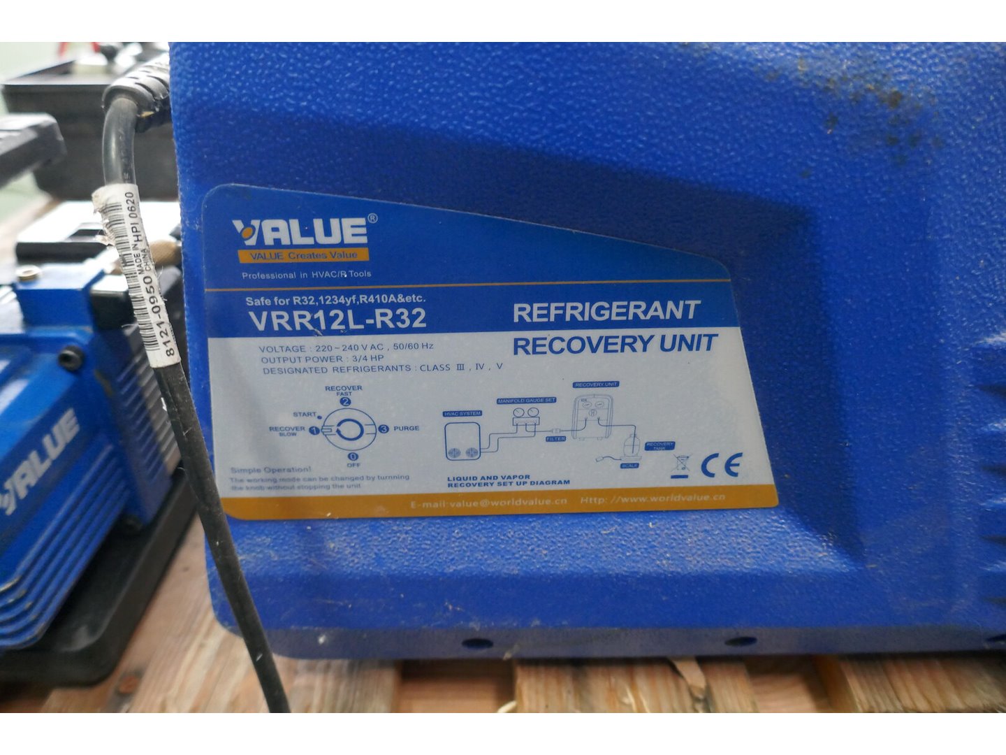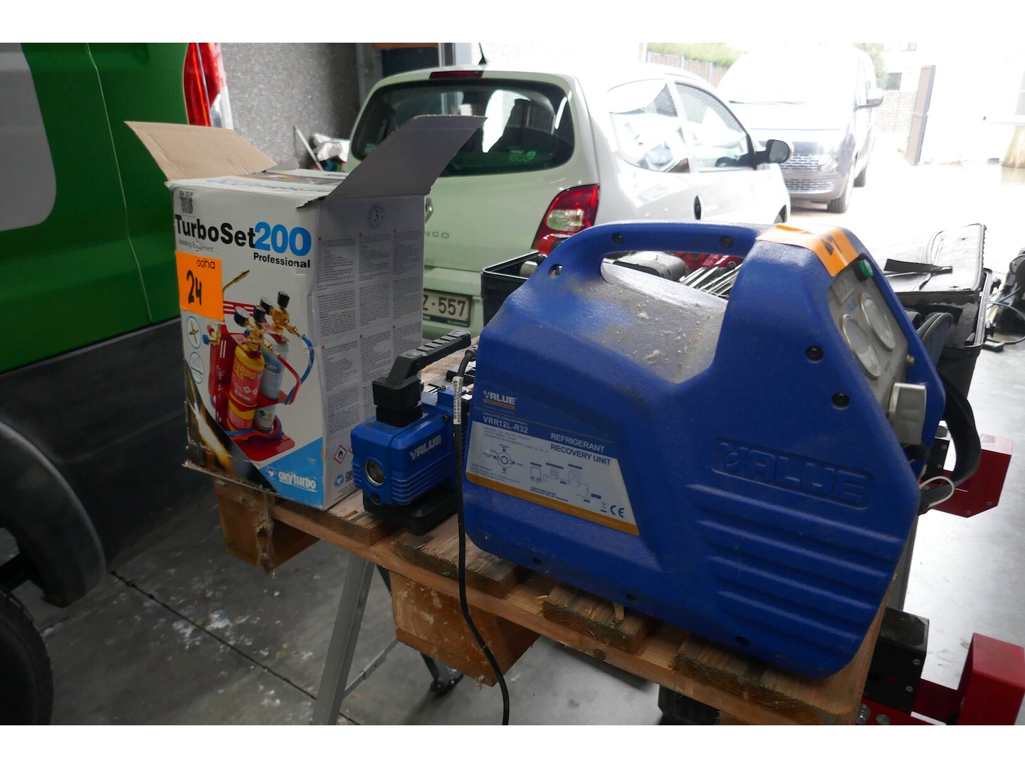 Olieloze recovery unit - merk, VALUE vrr12l-r32<br /> Vacuumpomp - merk, VALUE<br /> Lastoestel - merk, Turbo set 200