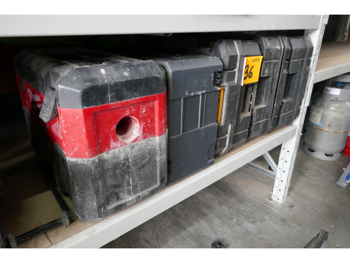 <p>Stofzuiger MILWAUKEE & 4 lege plastieken gereedschapskoffers</p>