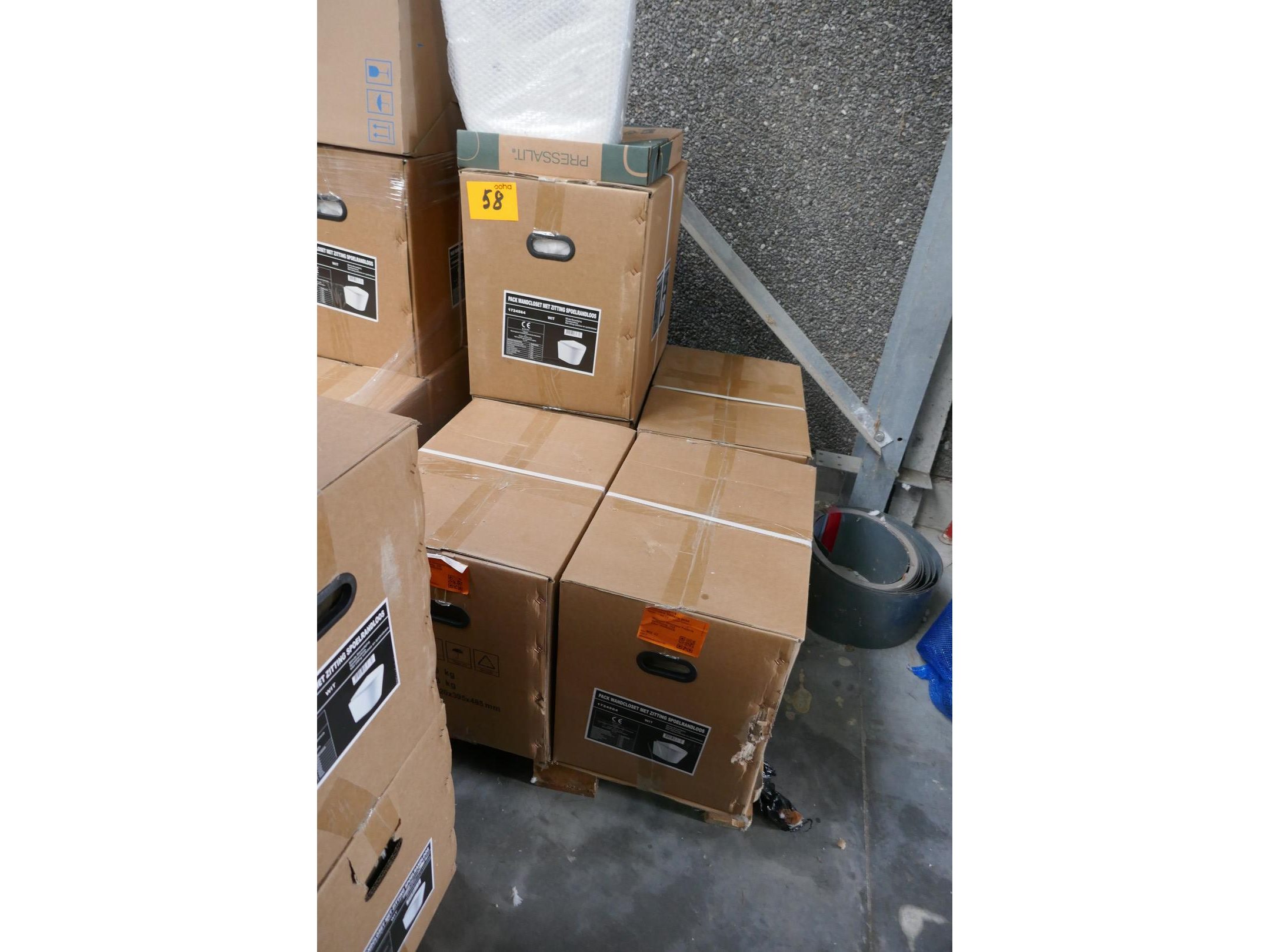 Wandcloset met zitting spoelrandloos - 5 stuks <br /> *merk : GALVANO <br /> WC pot - merk, PRESSALIT <br /> NIEUW !!! Nog in verpakking <br /> (onder eigendomsvoorbehoud !)