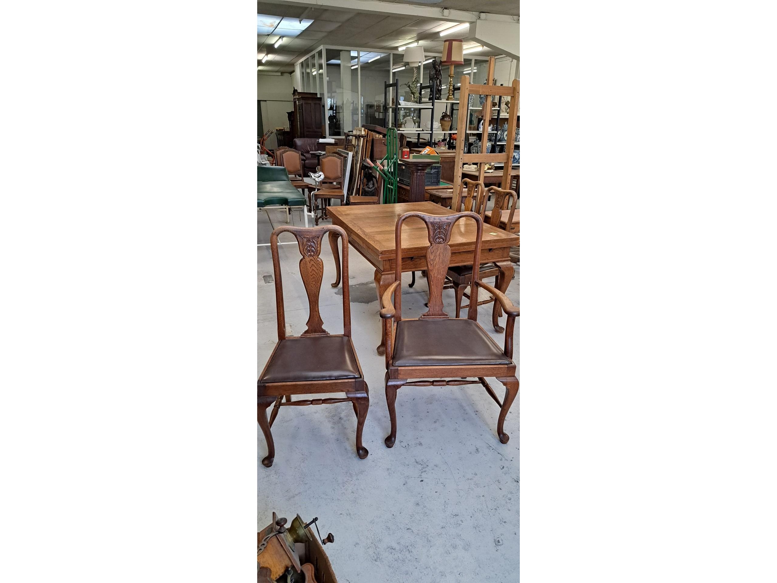 Eik en uitschuifbaar. 138x104, 2 stoelen met armleuningen . BTW op marge