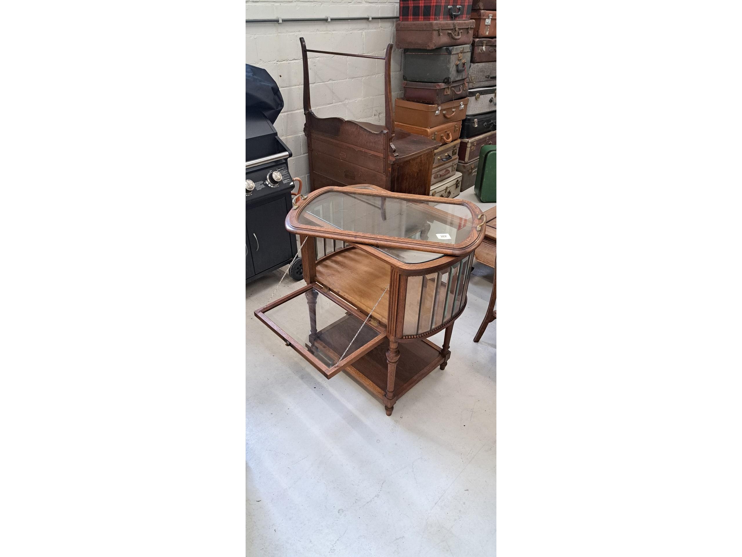 Hout en geslepen glas, dienblad afneembaar 74x46x79 . BTW op marge