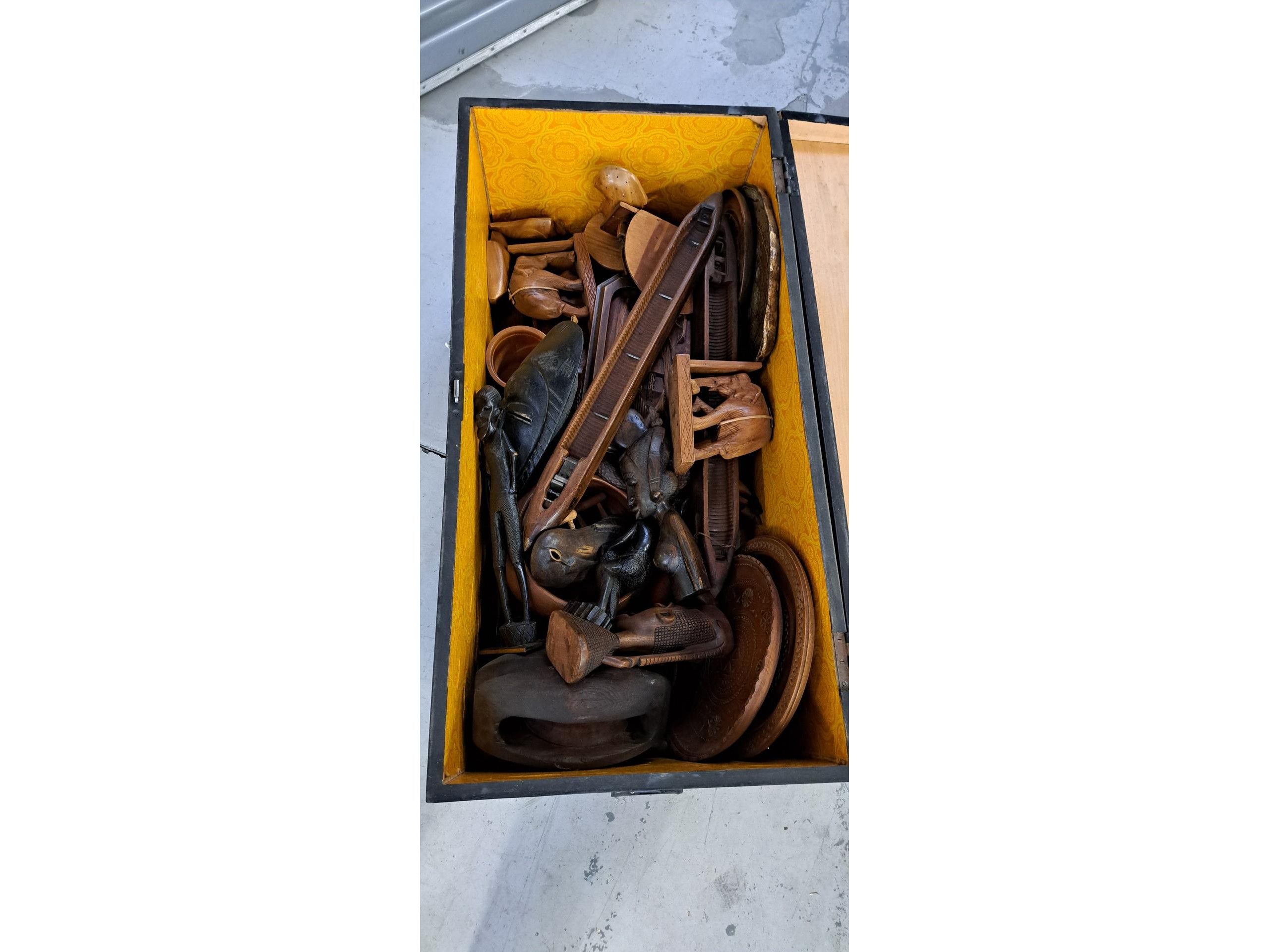 Koffer met houten voorwerpen