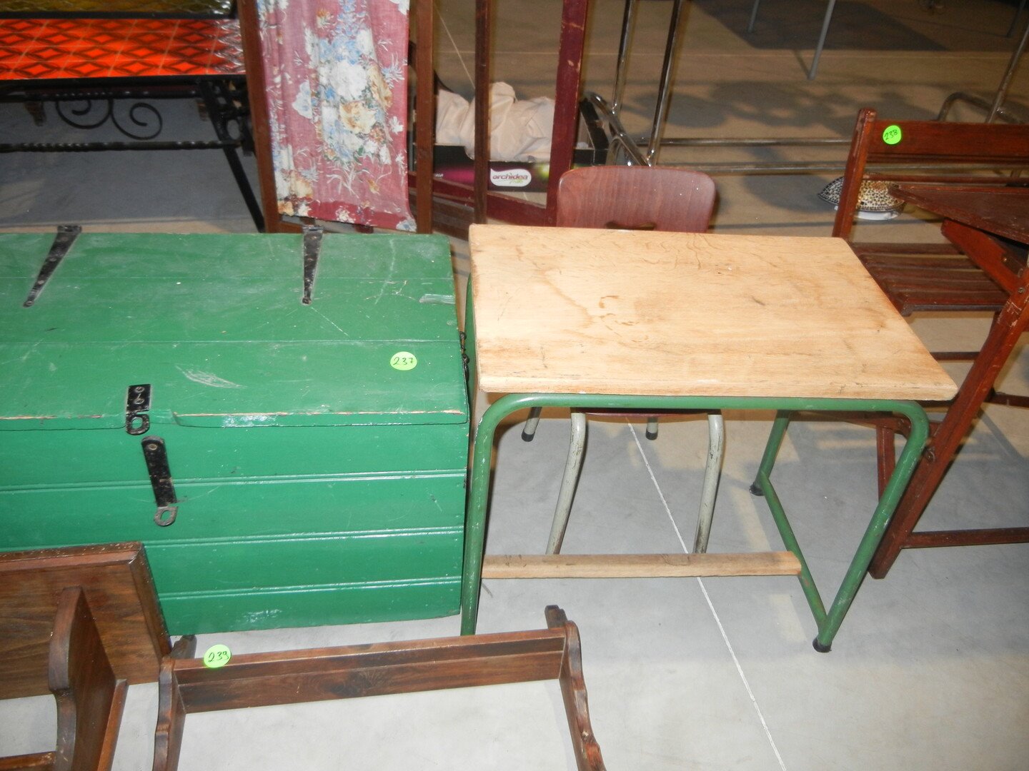 Oude kist en oude bureautafel voor kind