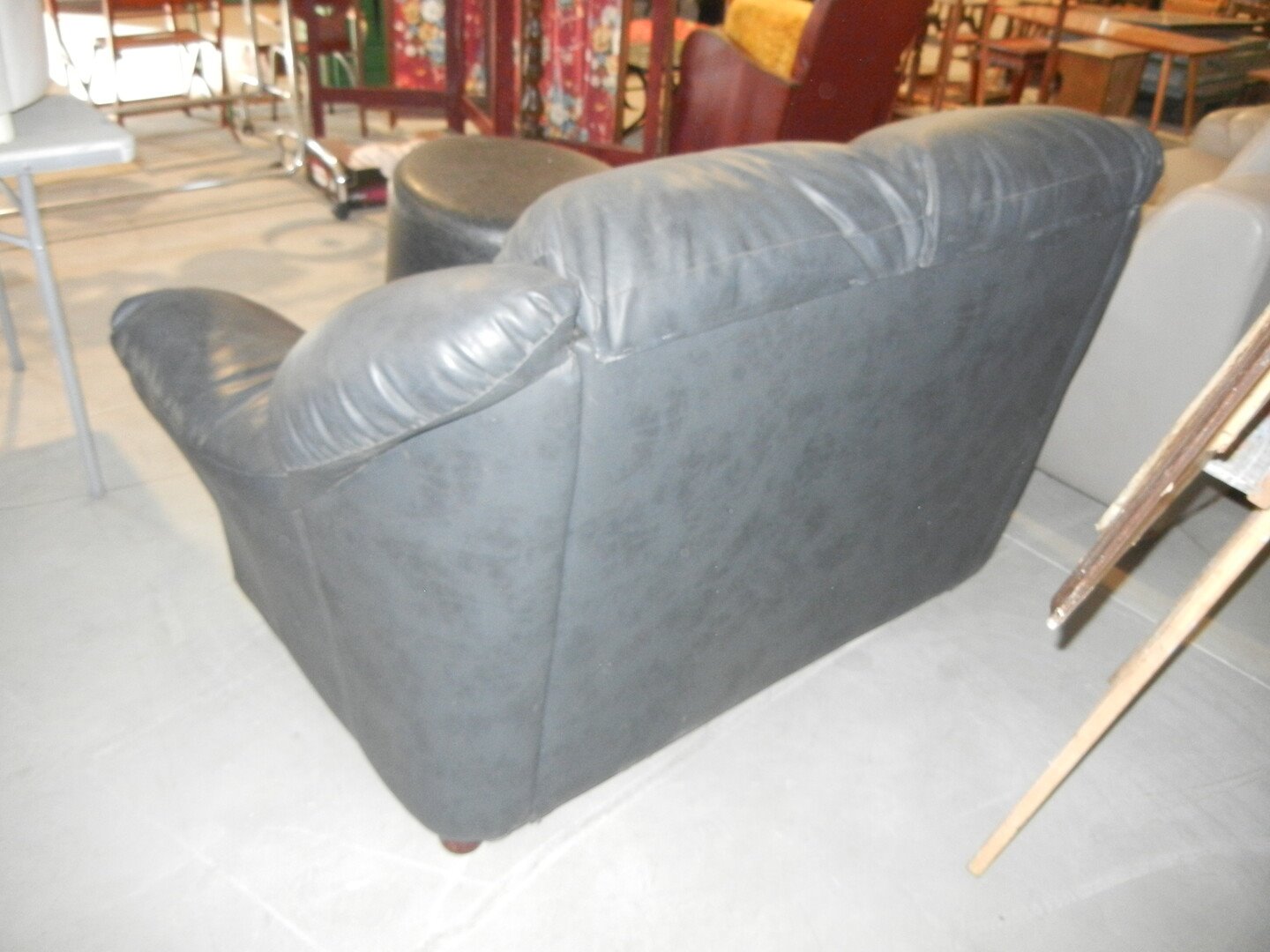Lederen twee zit met zwarte poef