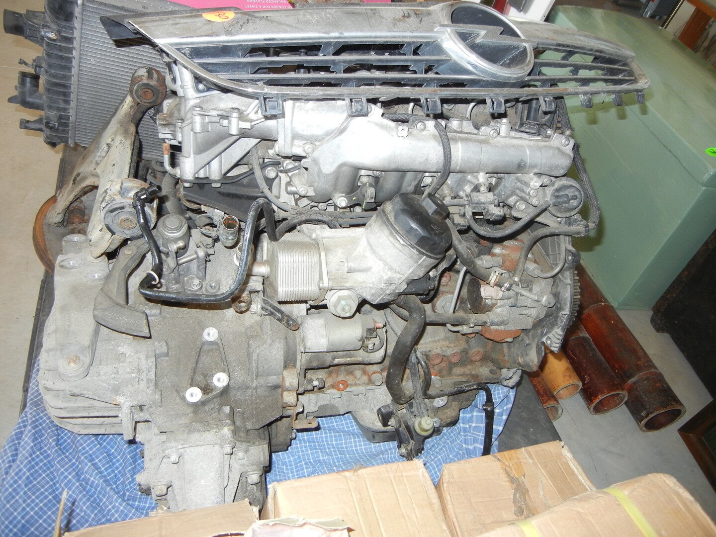 Opel motor en toebehoren (complete voorvorken, radiator, turbokoeler, etc..)