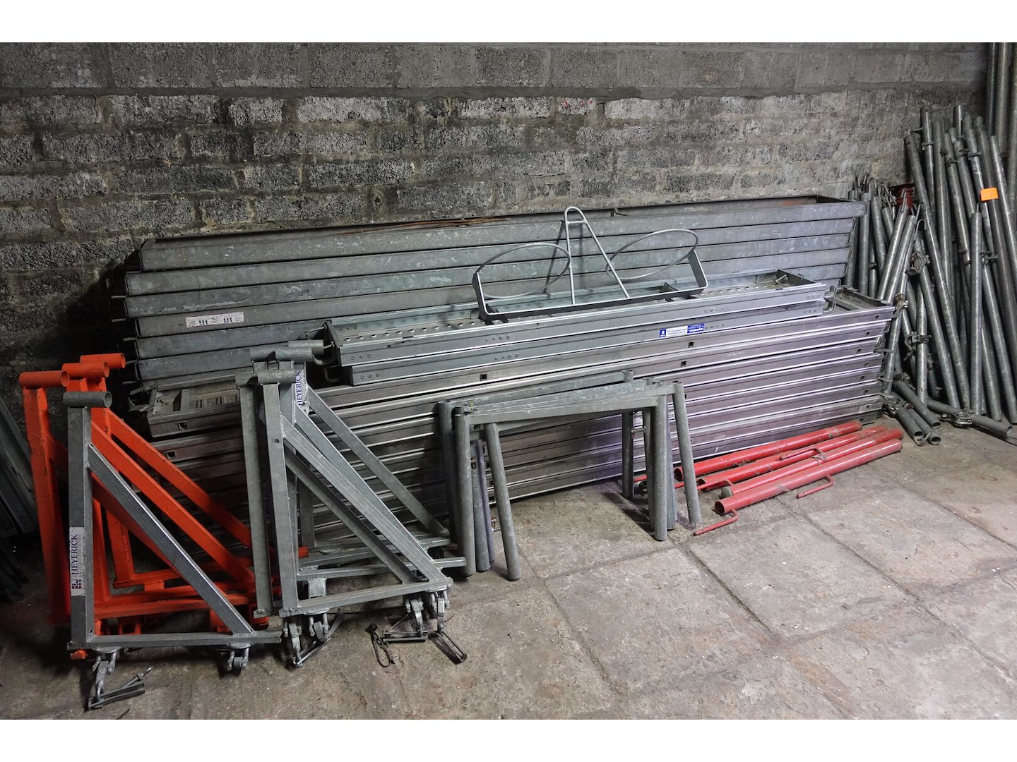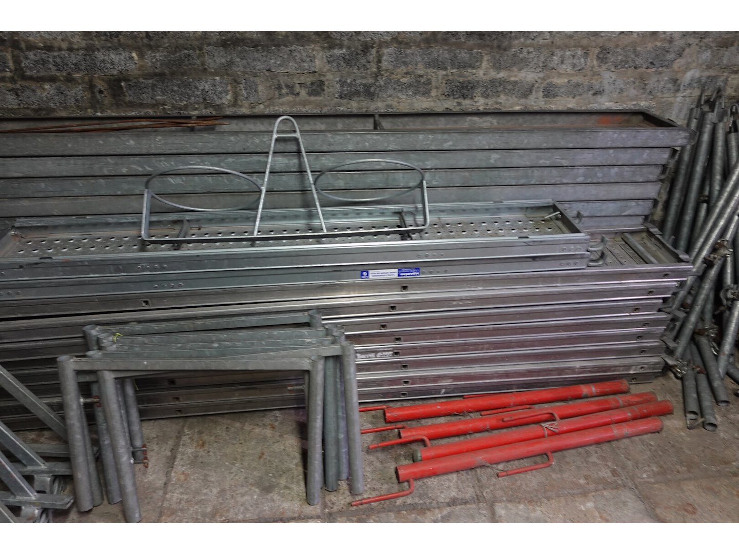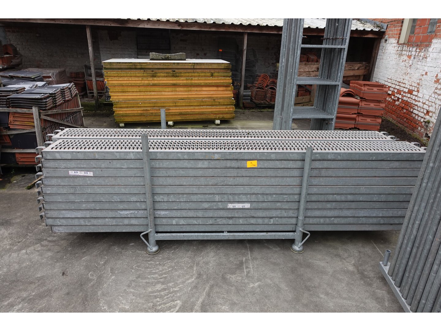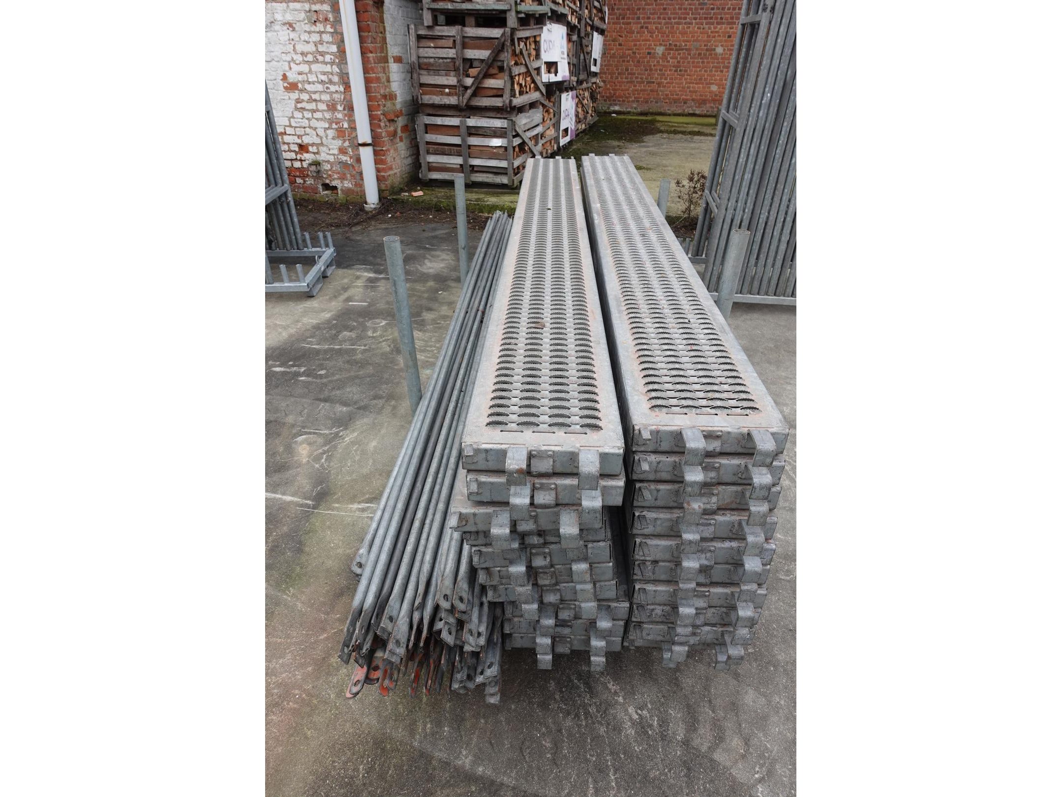 Oa: plm: 40 voeten,75x diverse staanders, 4x kruisverbinding, 55x alu/galva loopplank,9x Galva doorloper, diverse ladderhaken, diverse verbindingsstukken inclusief de galva houders.