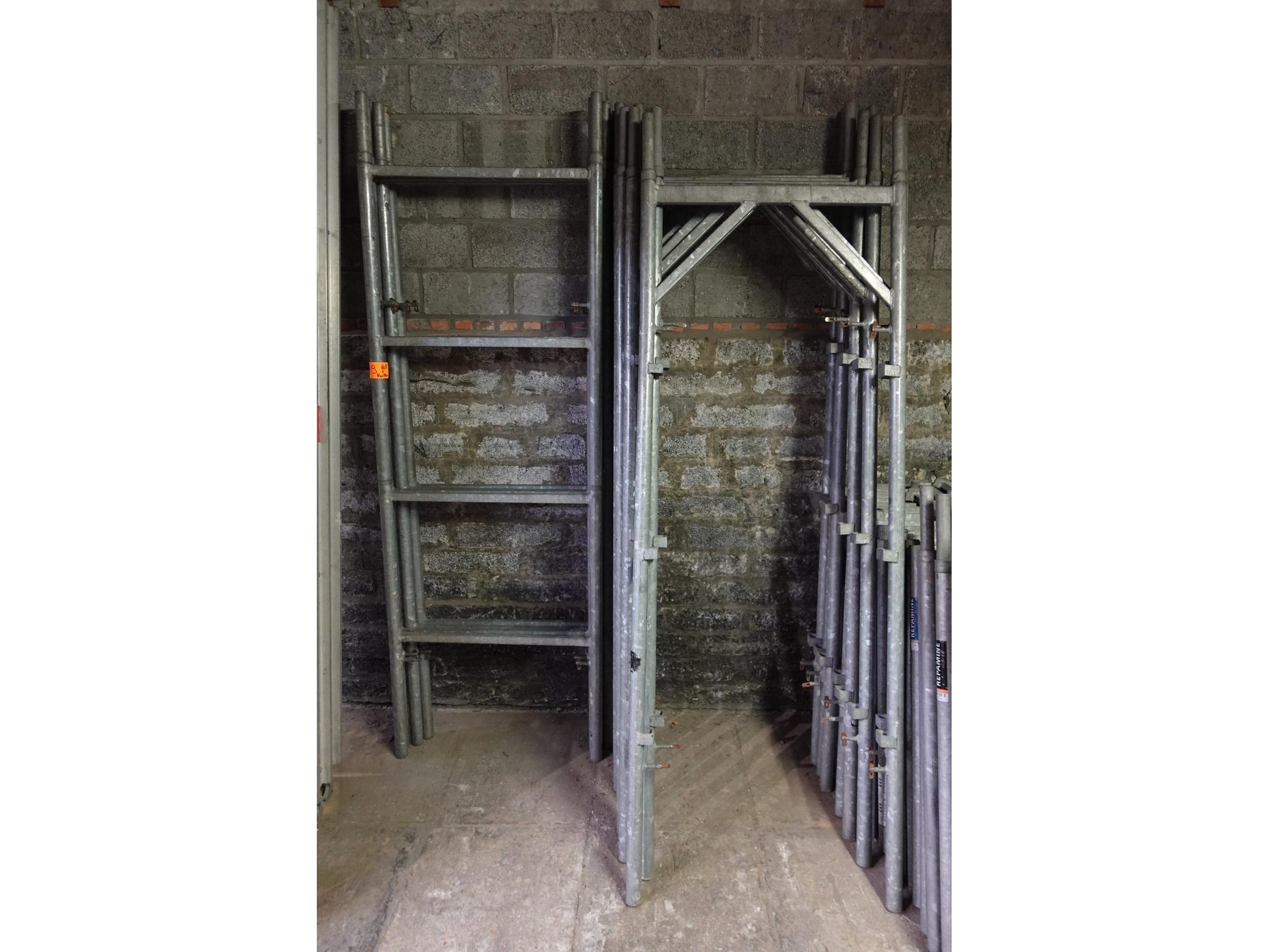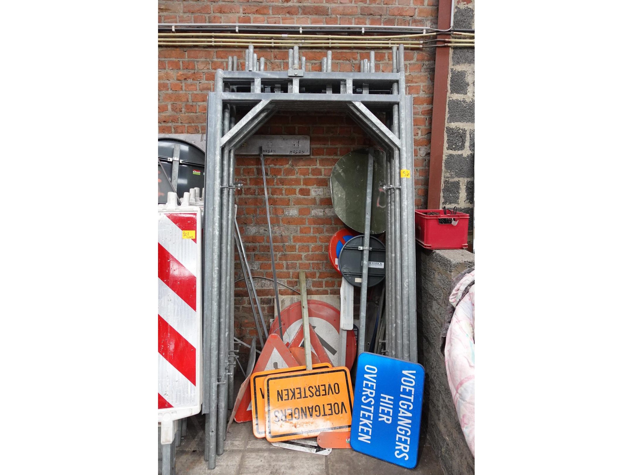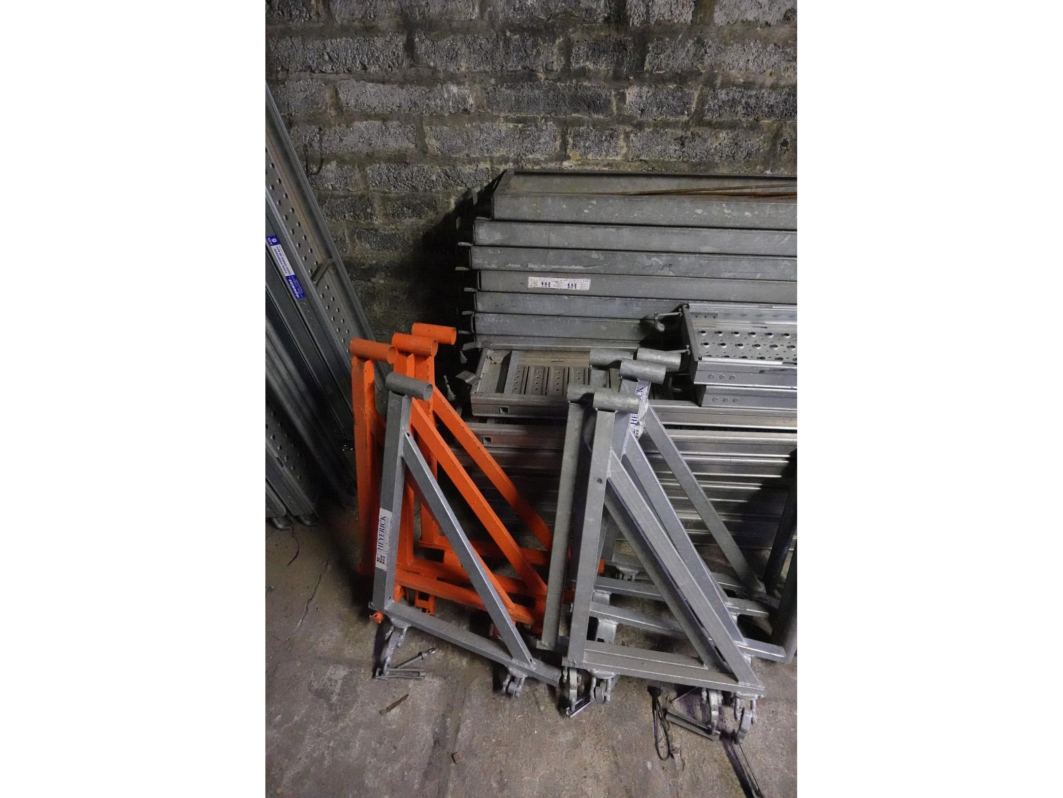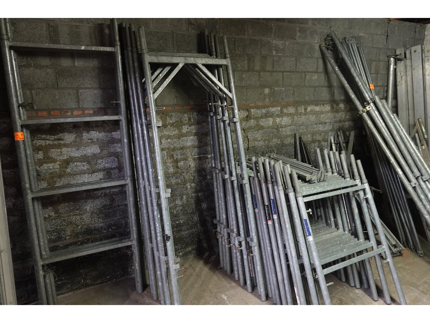 Oa: plm: 40 voeten,75x diverse staanders, 4x kruisverbinding, 55x alu/galva loopplank,9x Galva doorloper, diverse ladderhaken, diverse verbindingsstukken inclusief de galva houders.