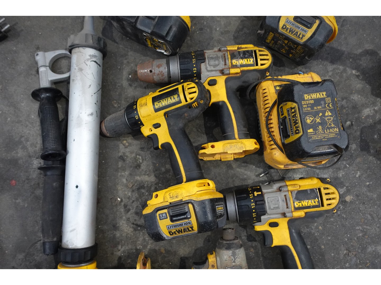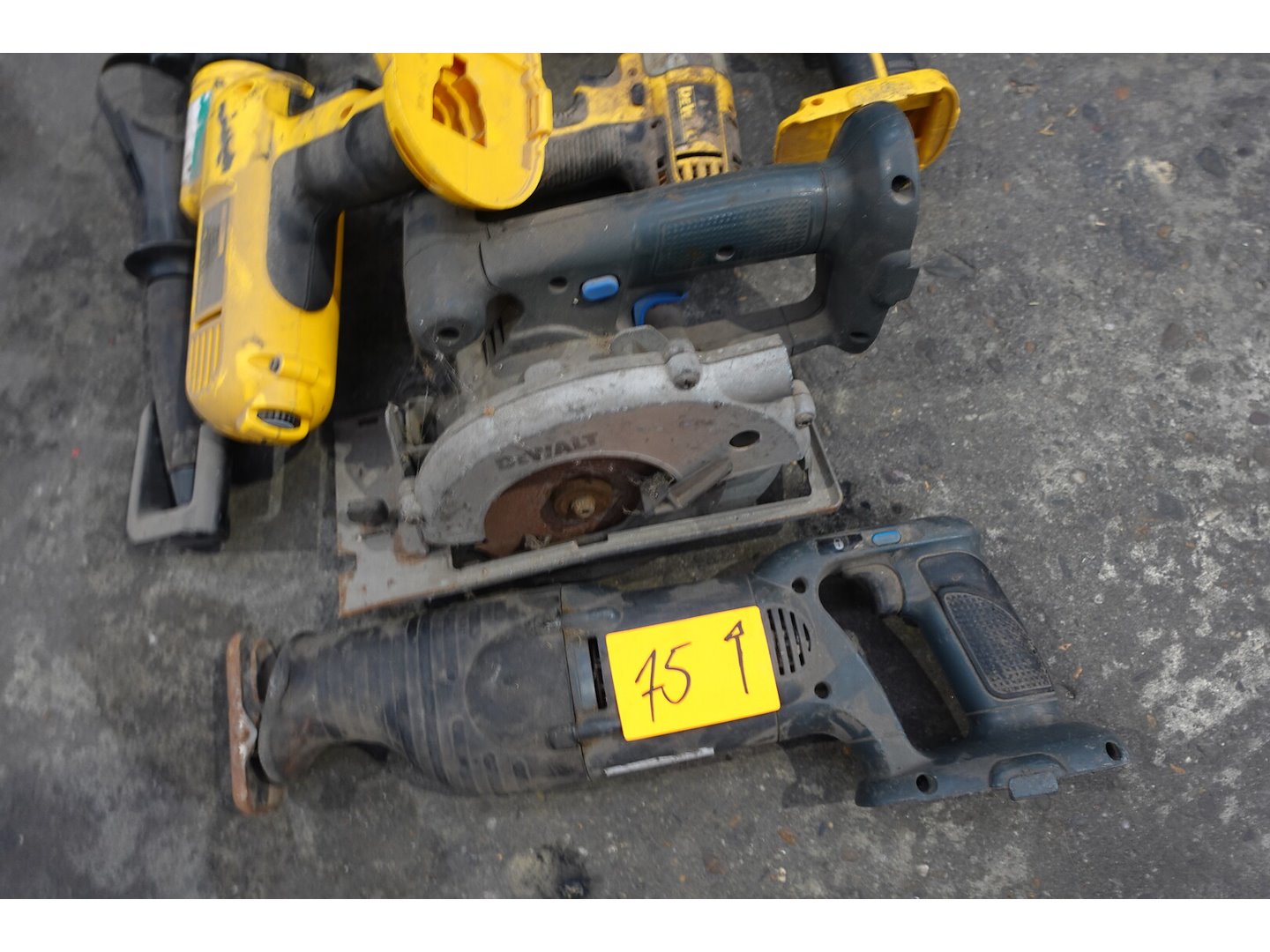 Oa: 2x decoupeerzaag, 3x boormachine, kitspuit, slagschroefmachine, cirkelzaag en recipero, 4x accu en lader