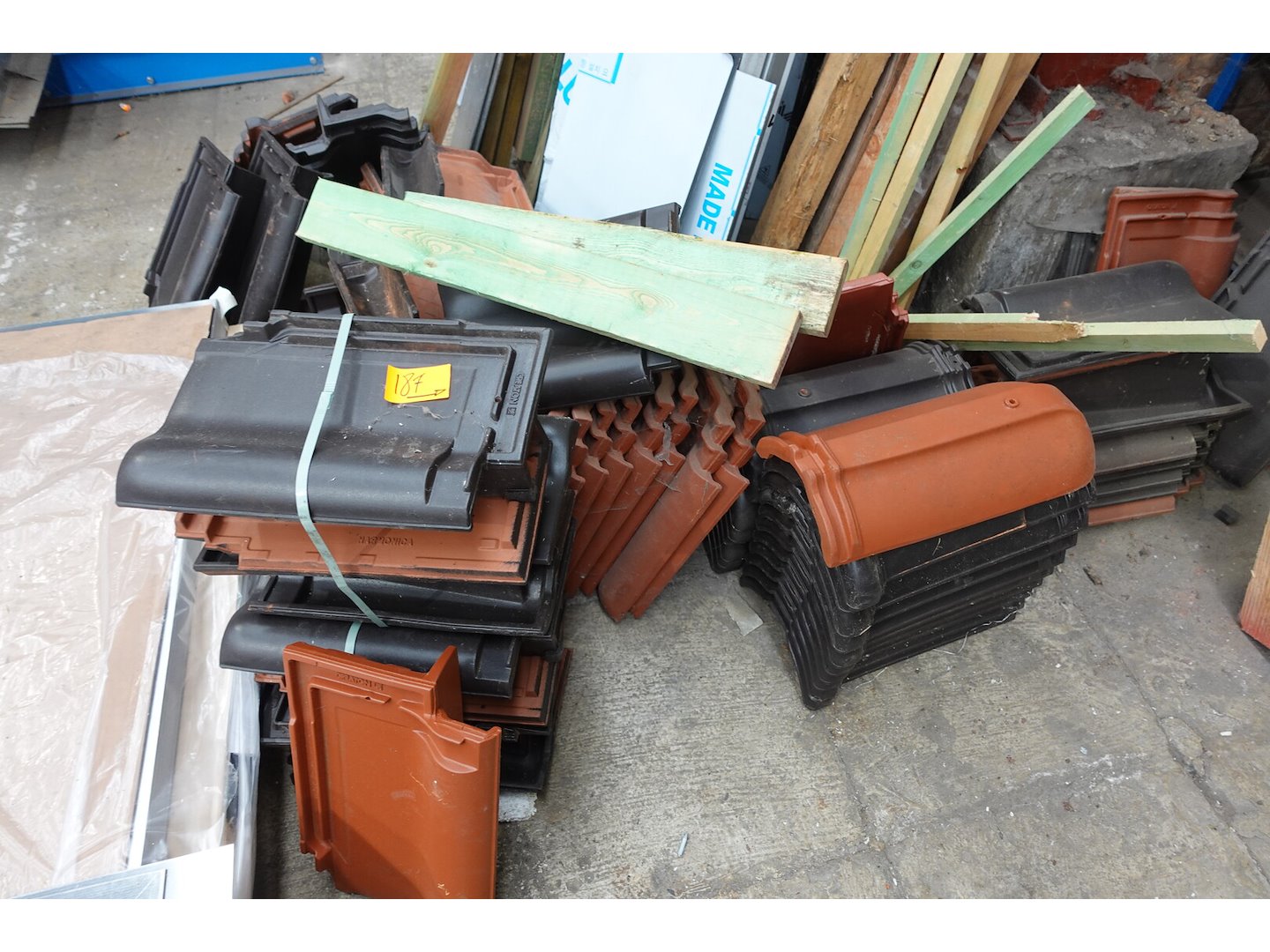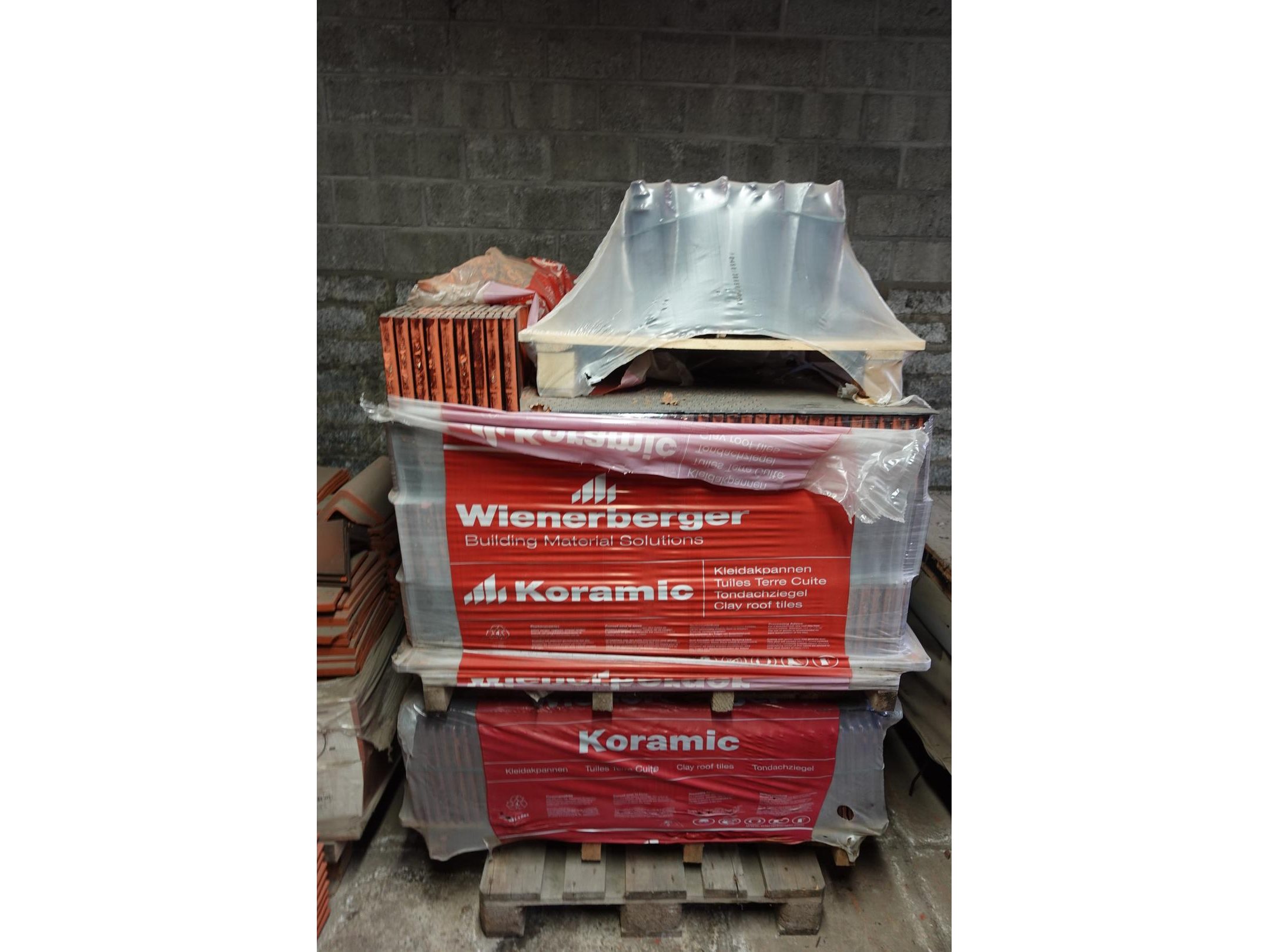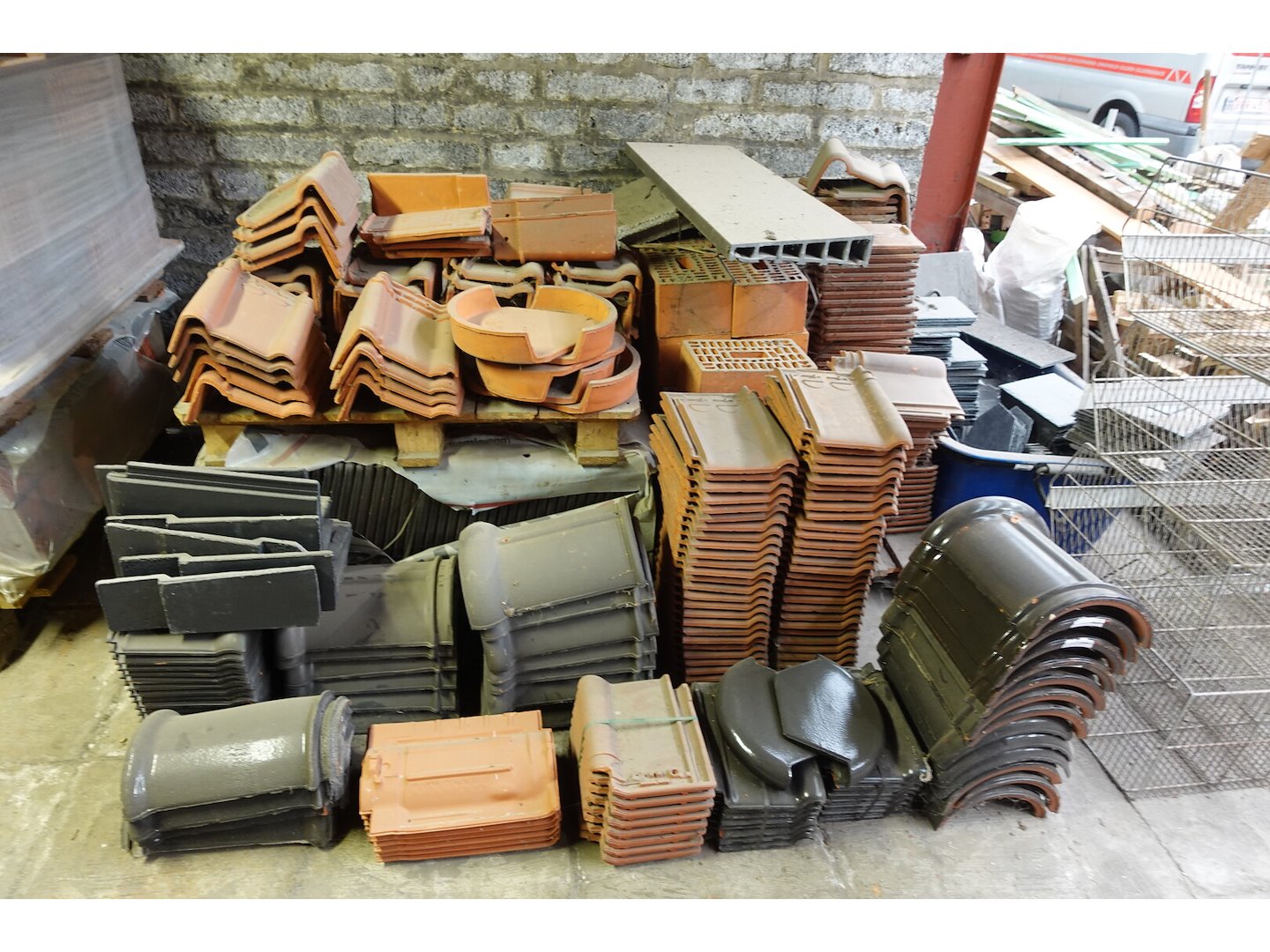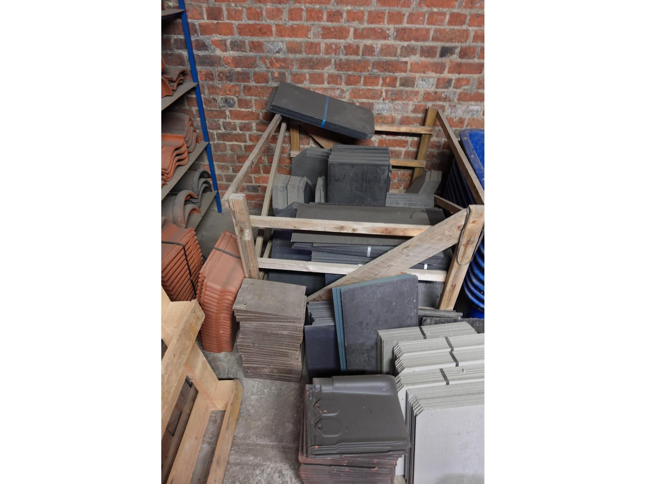 Waaronder diverse "rest"paletten, leien,natuurleien,nokpannen,...