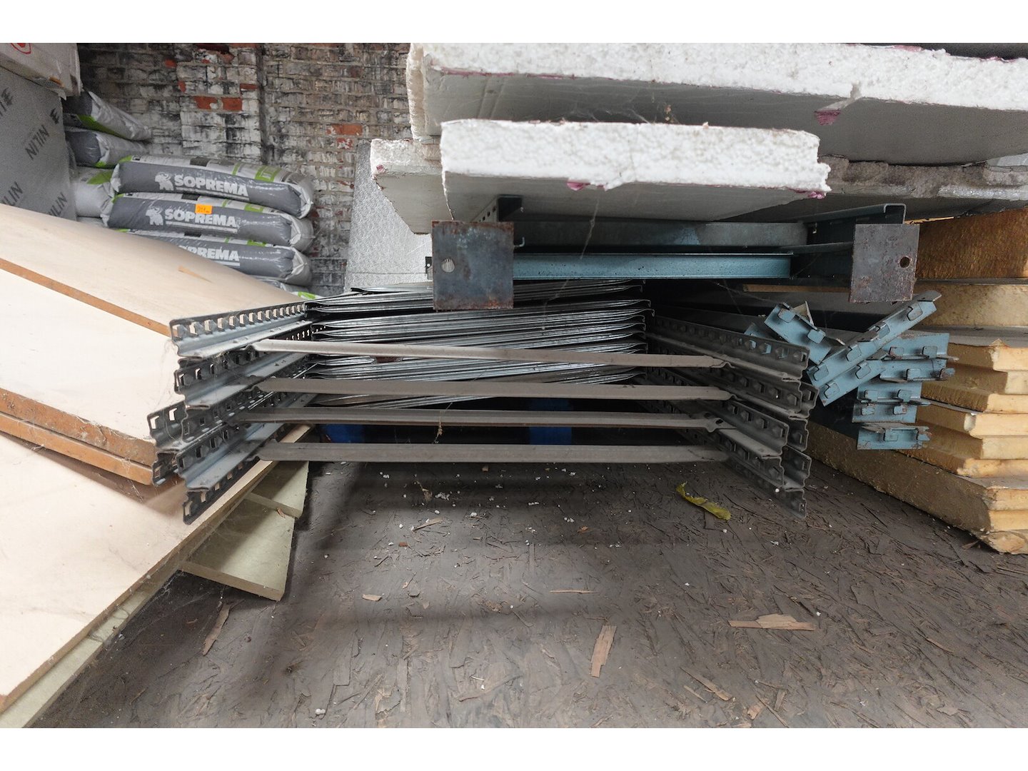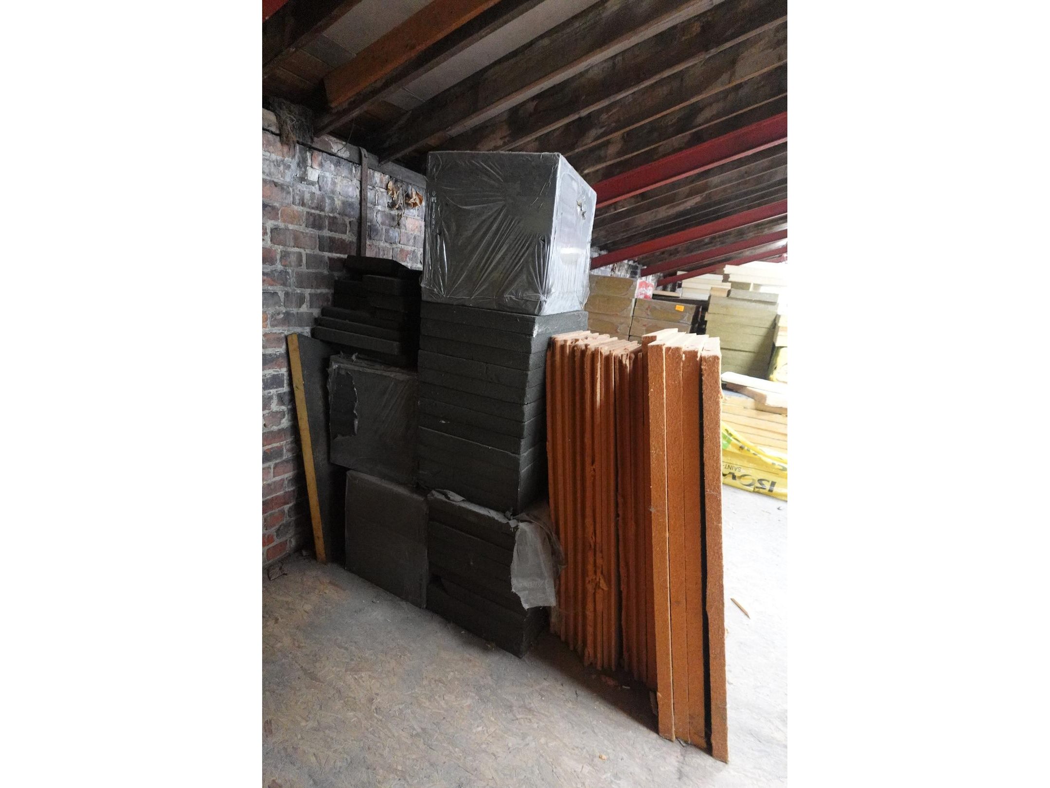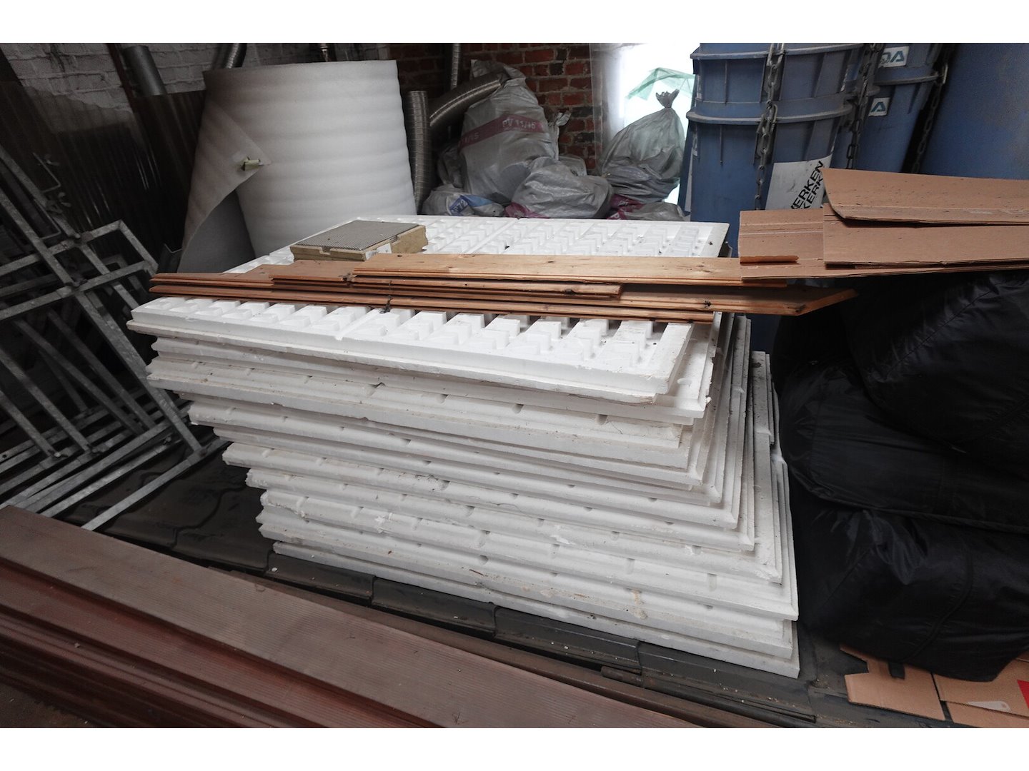 Oa: diverse dubbelwandige buizn,bankarai planken, resthout, isolatie,...<br /> Locatie: zolder