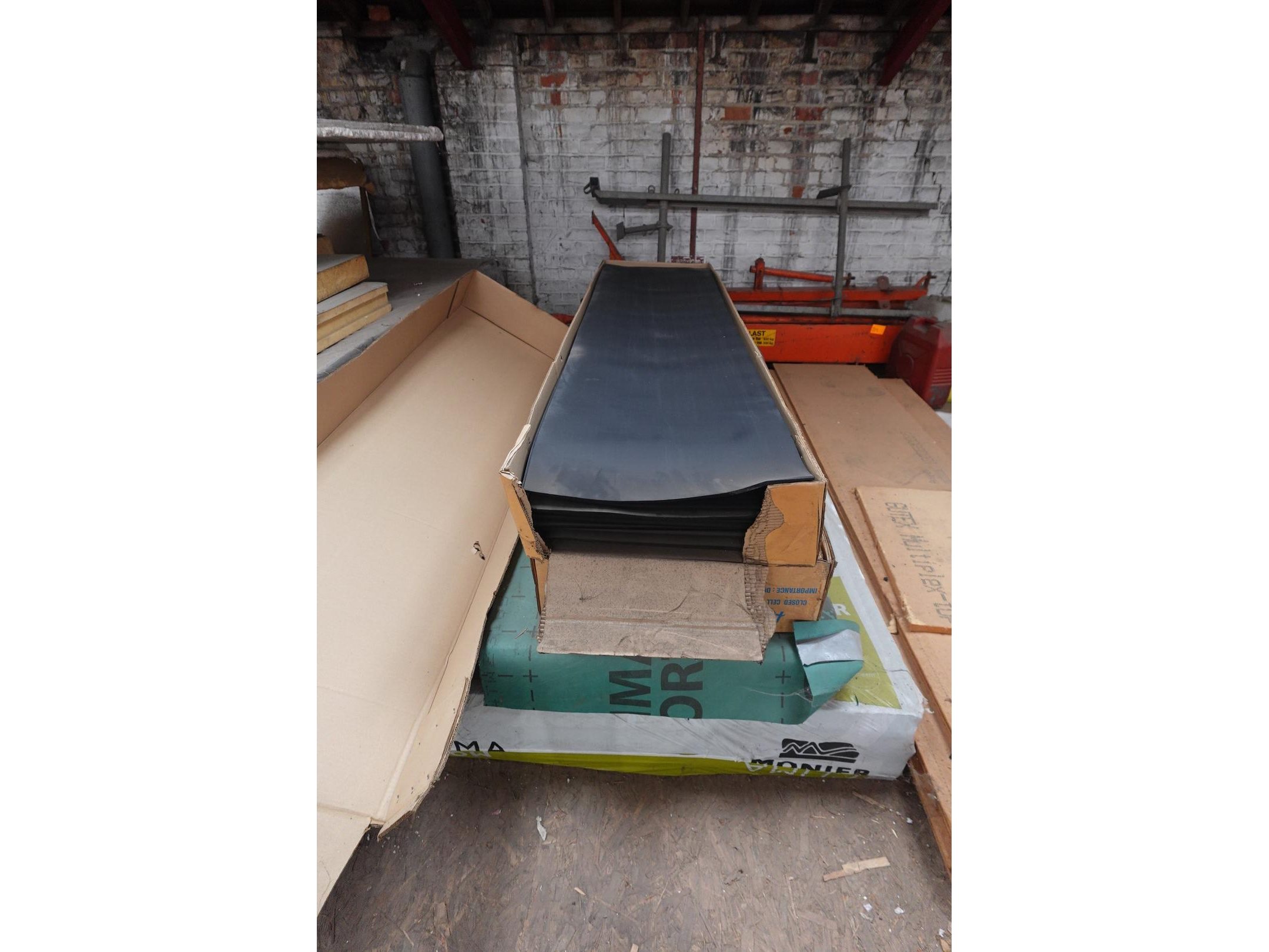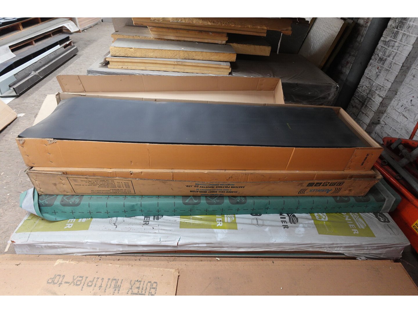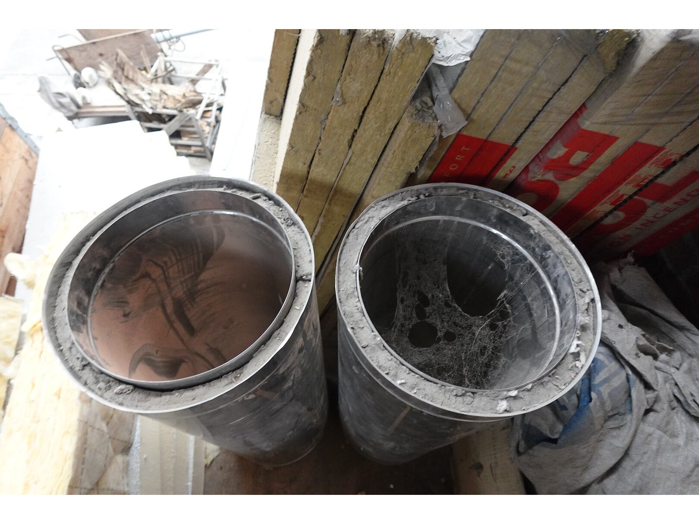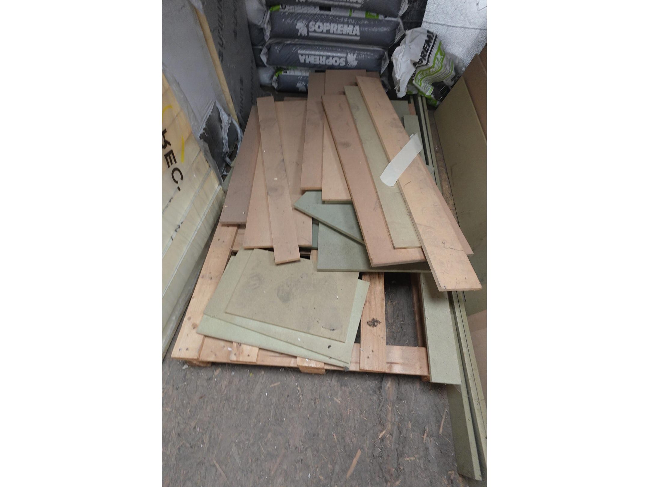 Oa: diverse dubbelwandige buizn,bankarai planken, resthout, isolatie,...<br /> Locatie: zolder